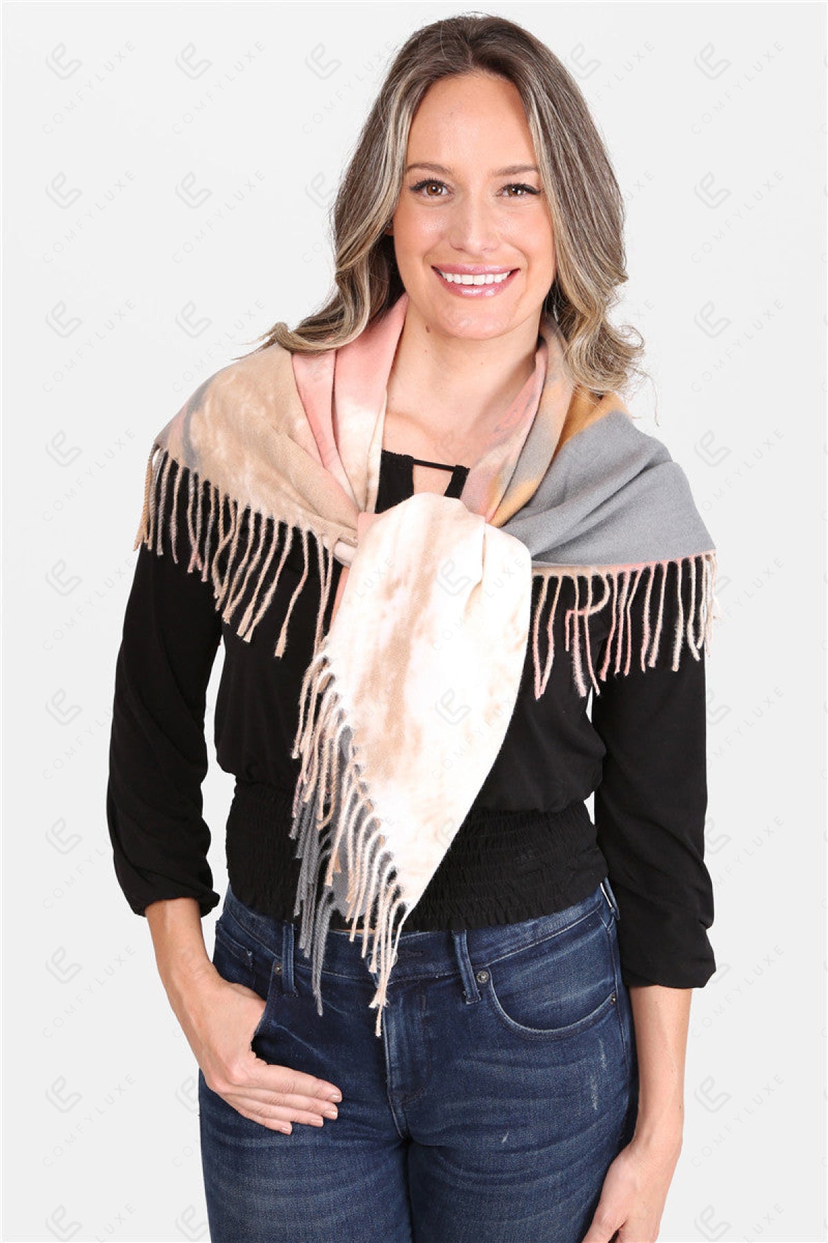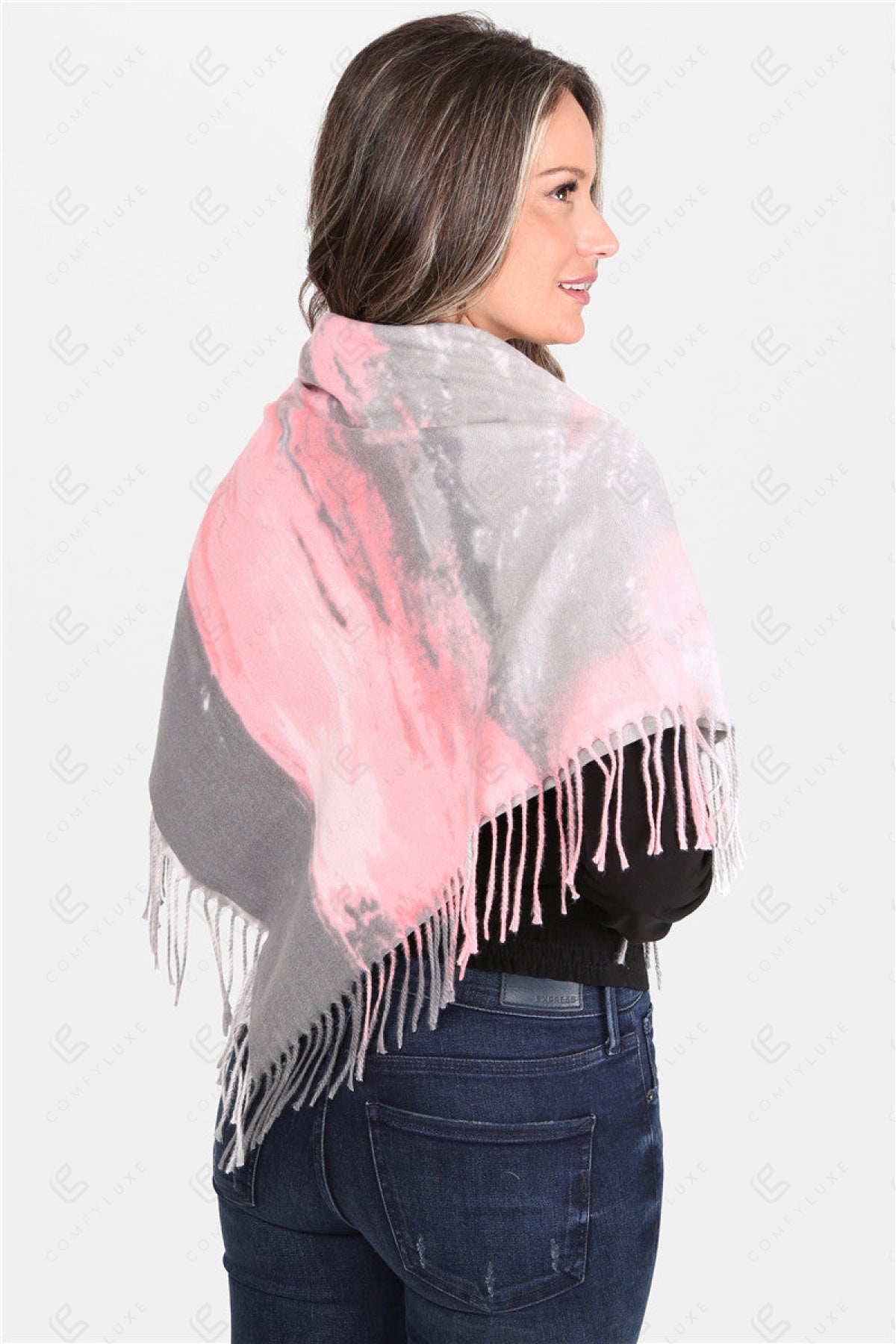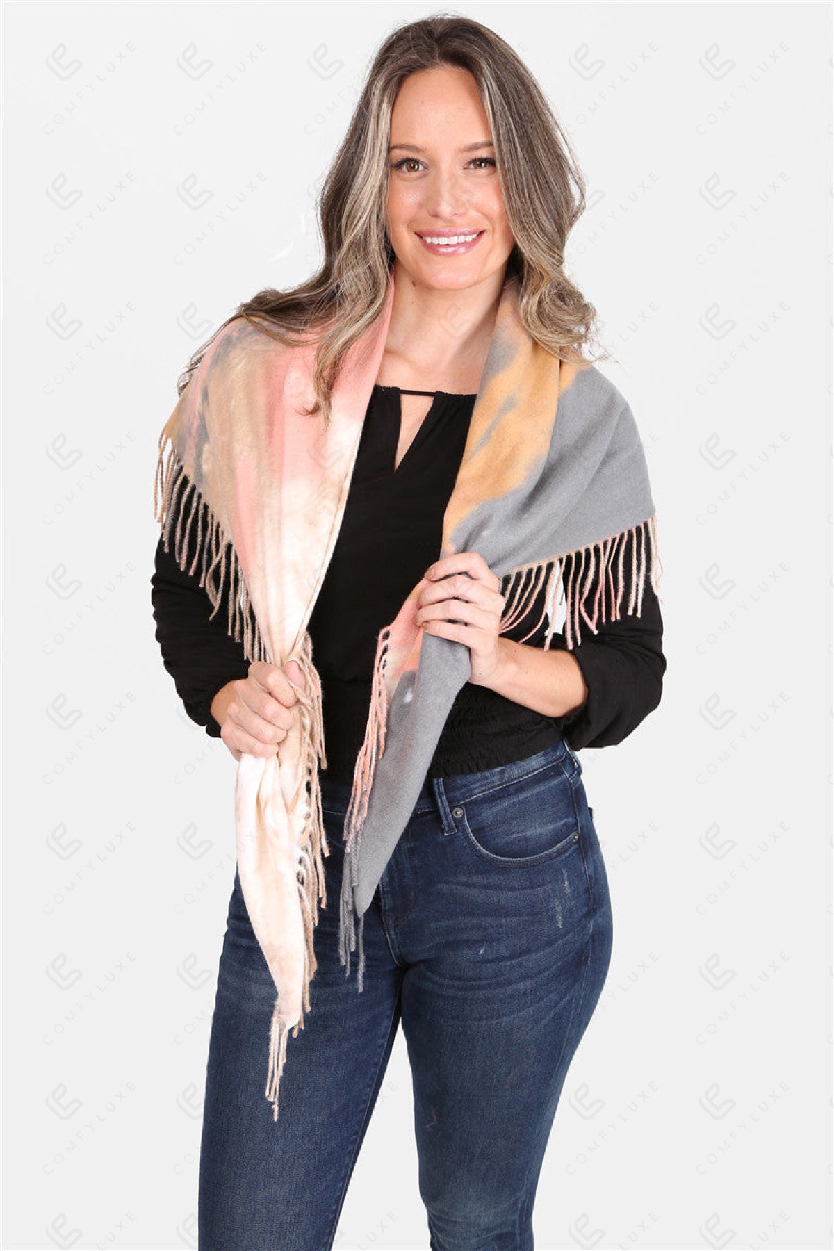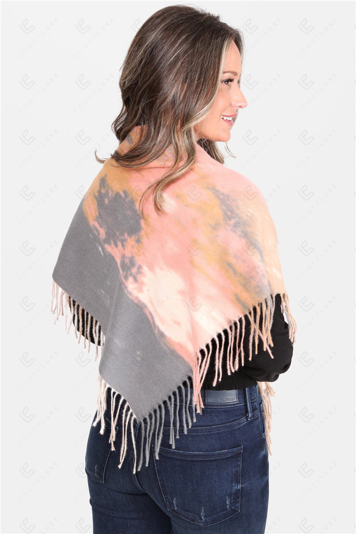 TIE-DYE PATTERN BLANKET SCARF W/ FRINGE