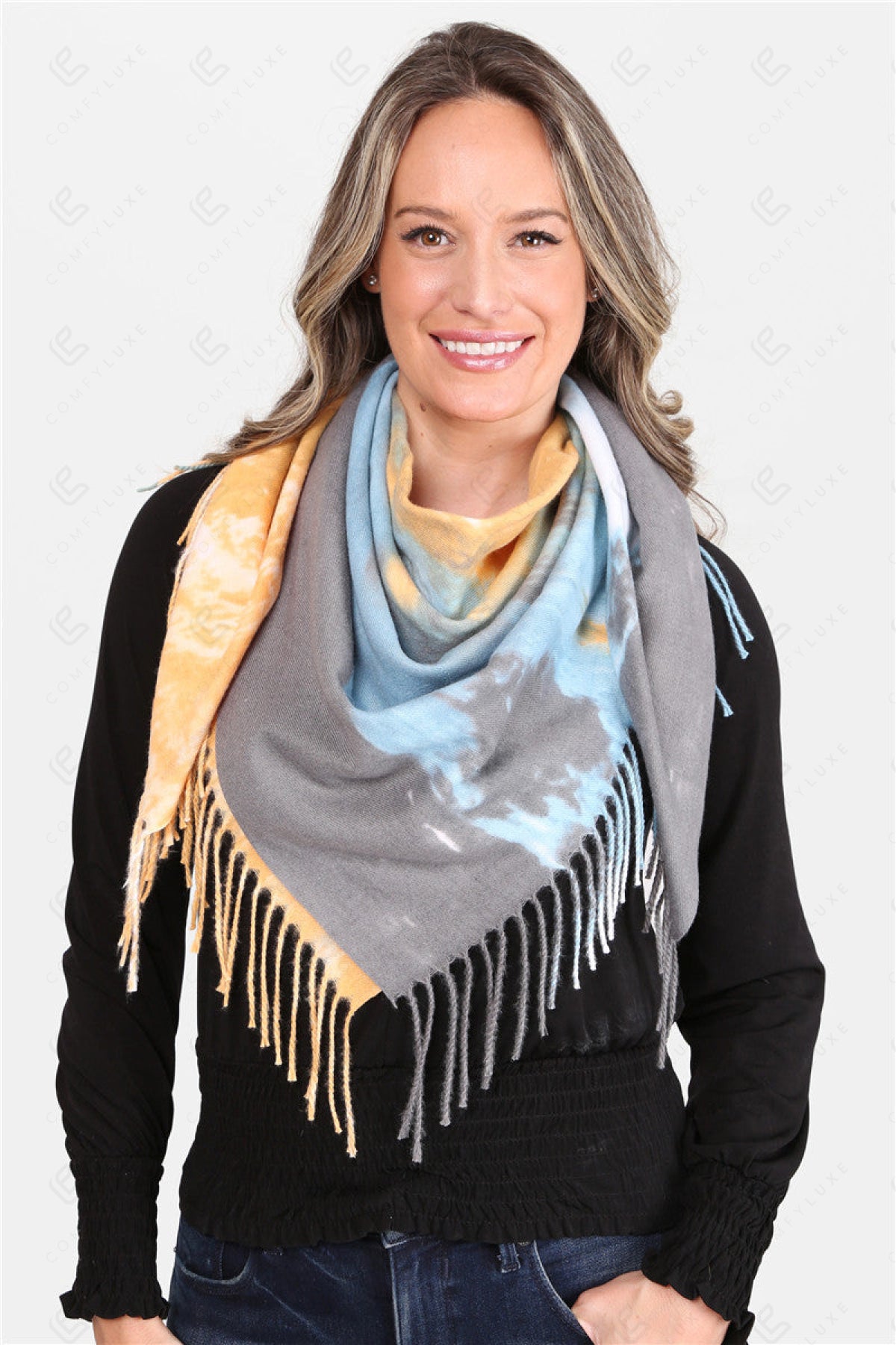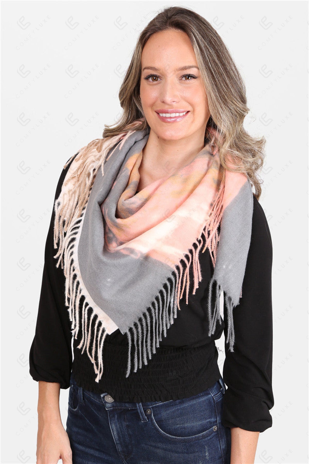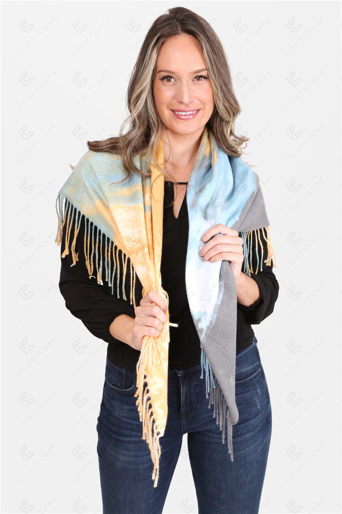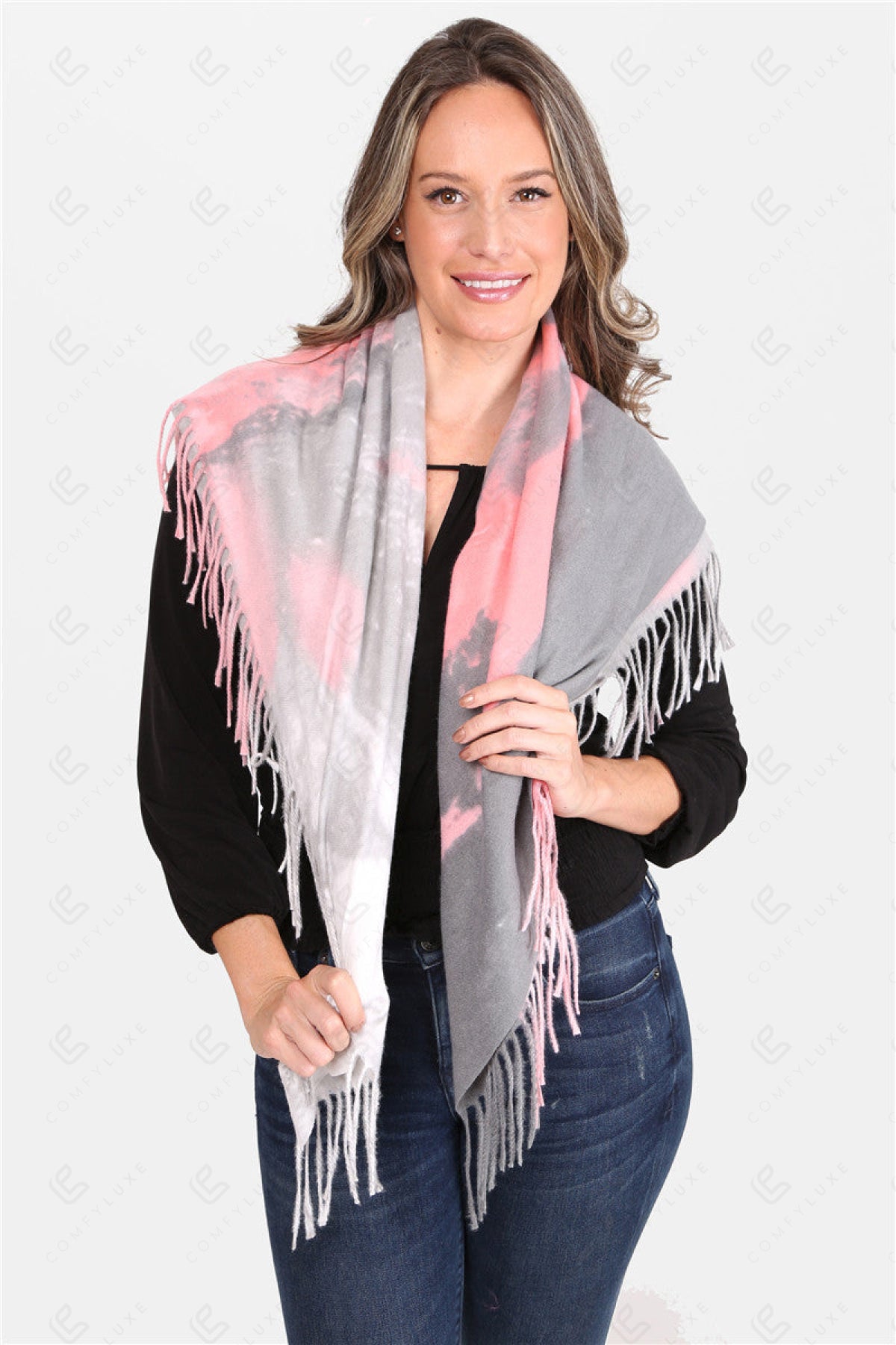 TIE-DYE PATTERN BLANKET SCARF W/ FRINGE