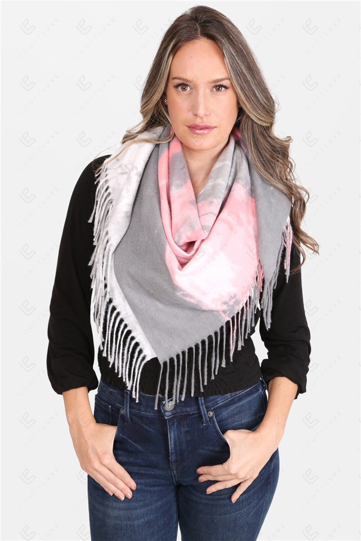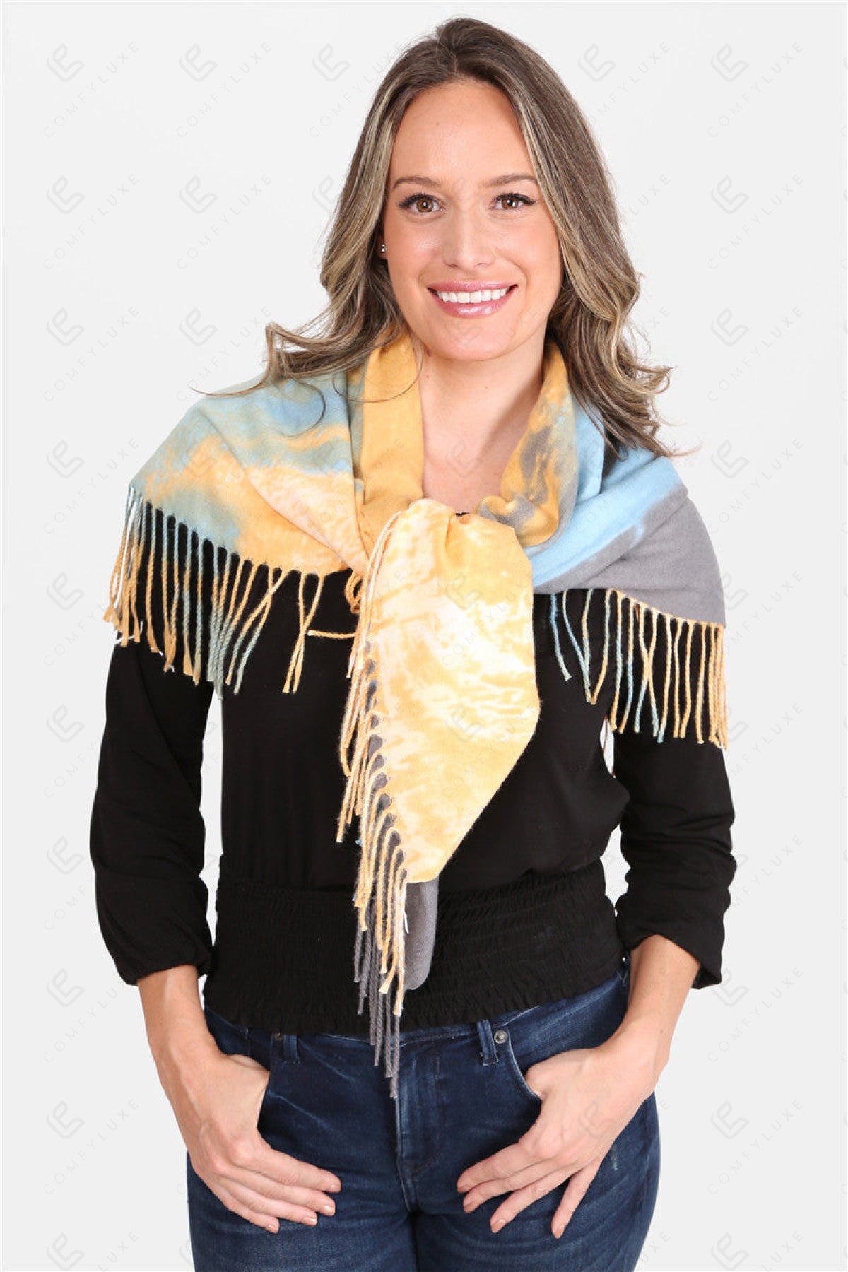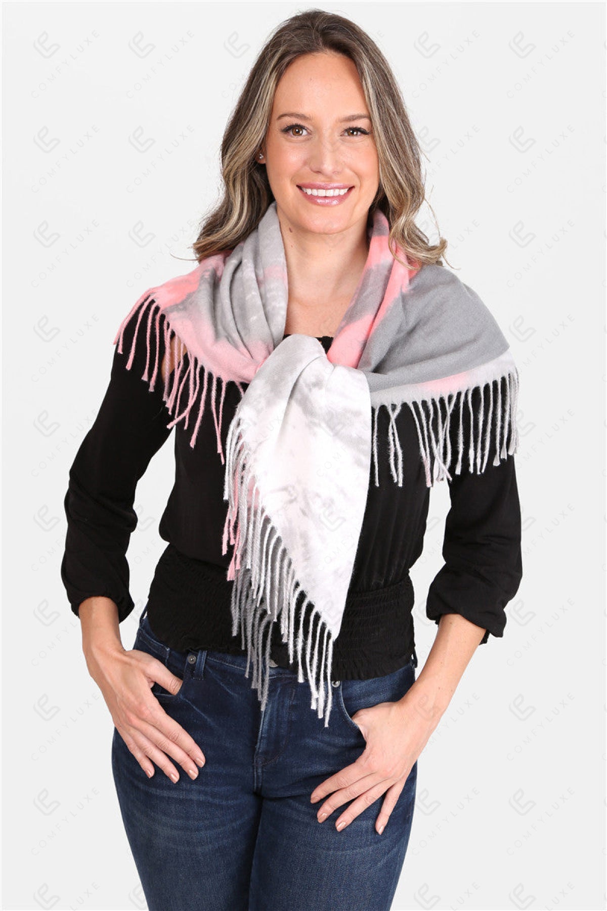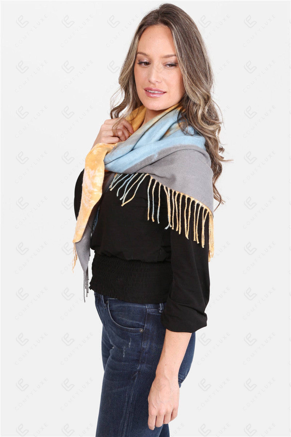 TIE-DYE PATTERN BLANKET SCARF W/ FRINGE