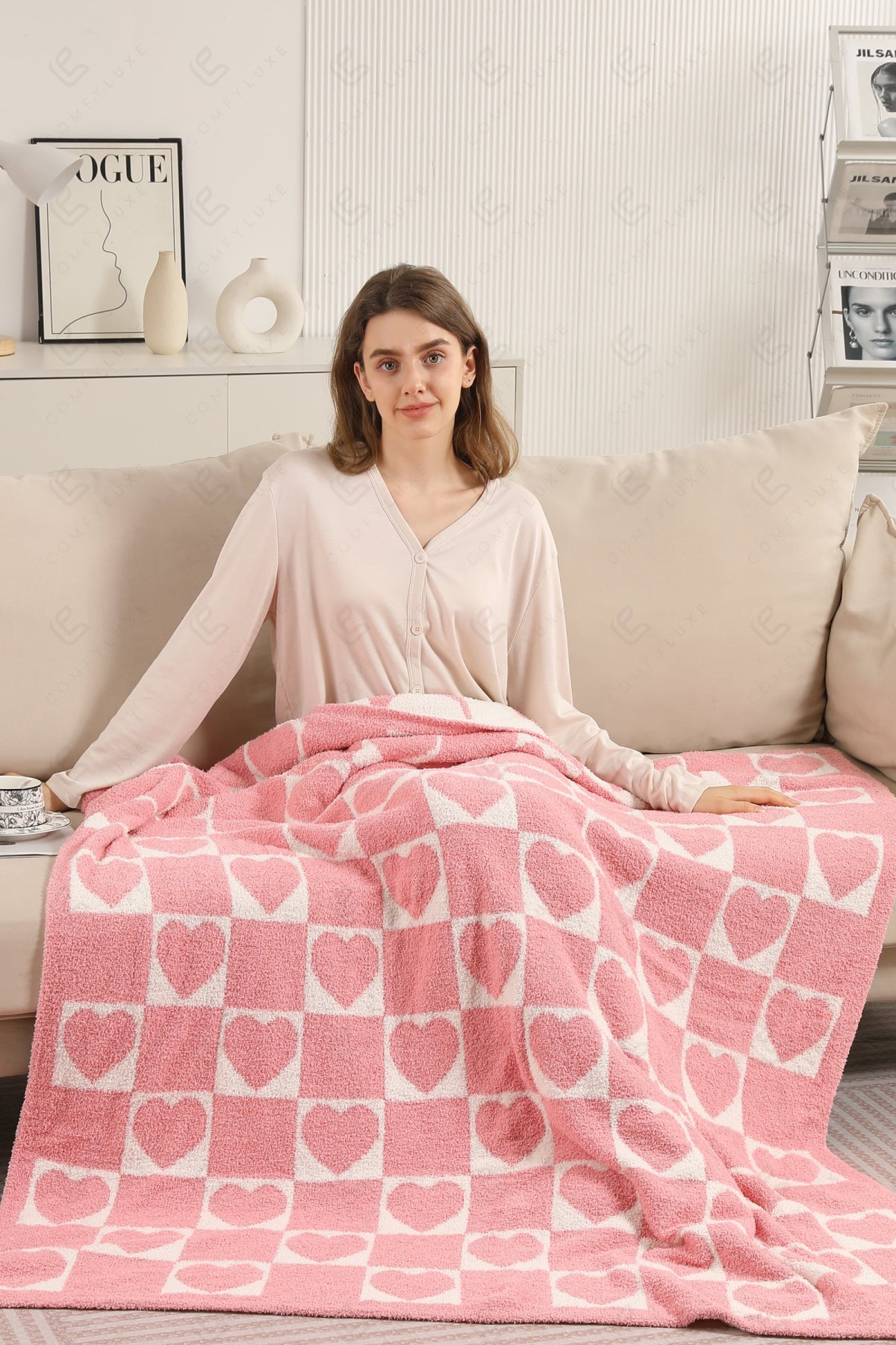 CHECKERED & HEART PATTERN THROW BLANKET