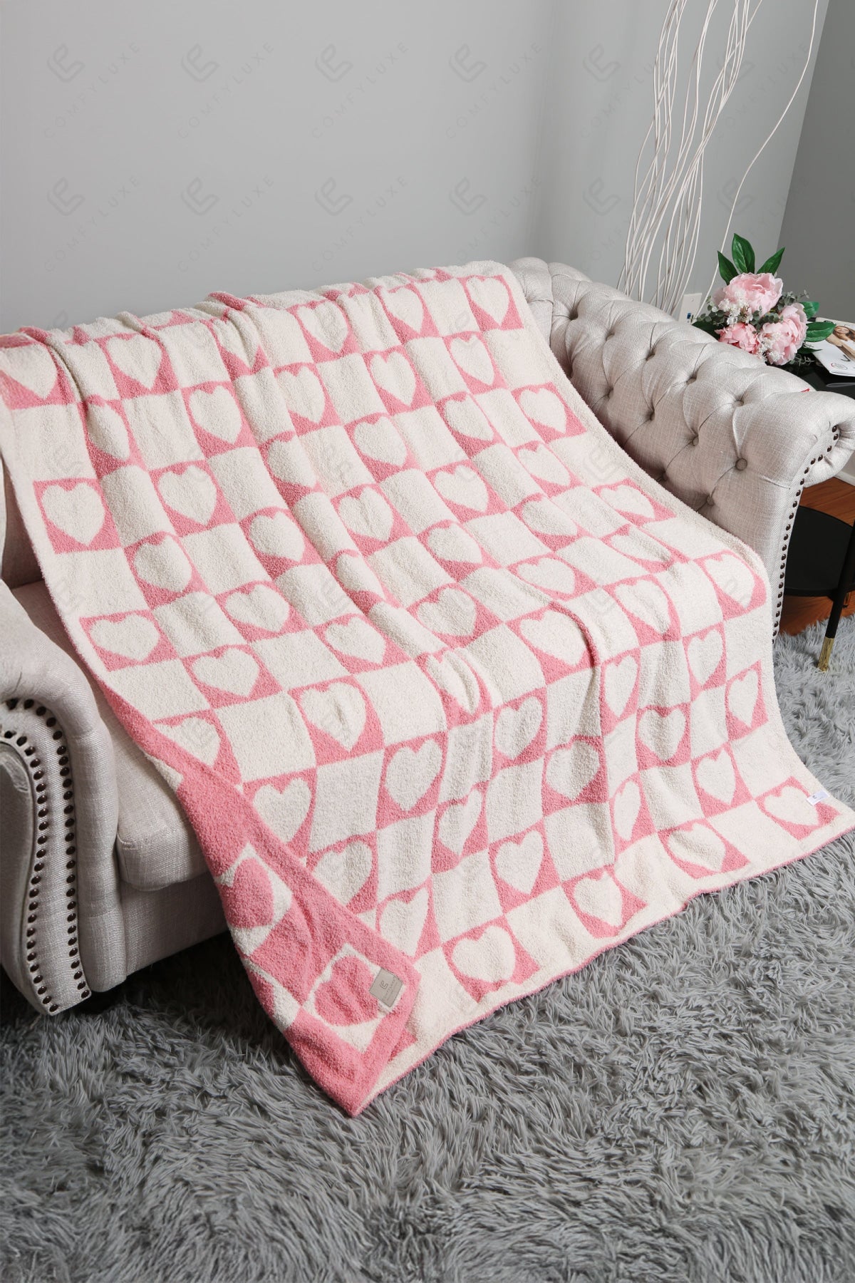 CHECKERED & HEART PATTERN LUXURY SOFT THROW BLANKET