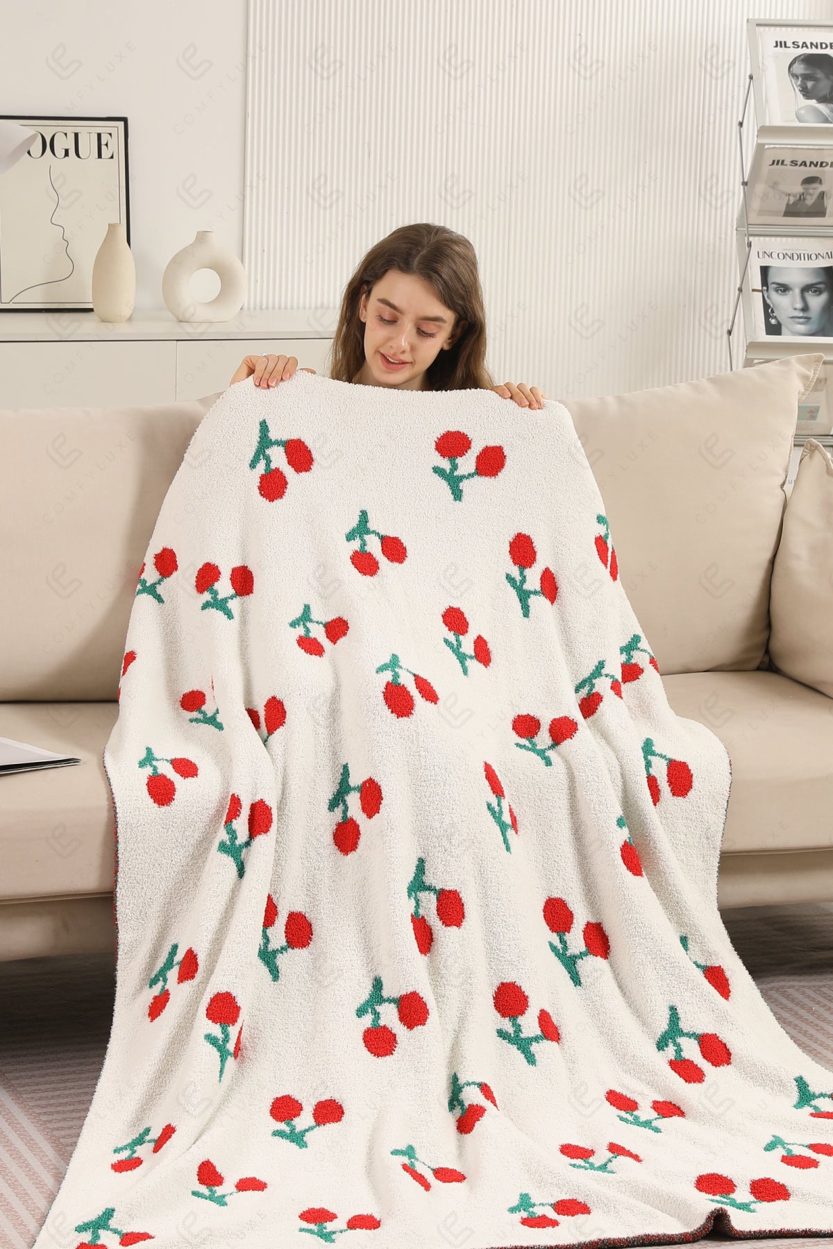 CHERRY PATTERN THROW BLANKET
