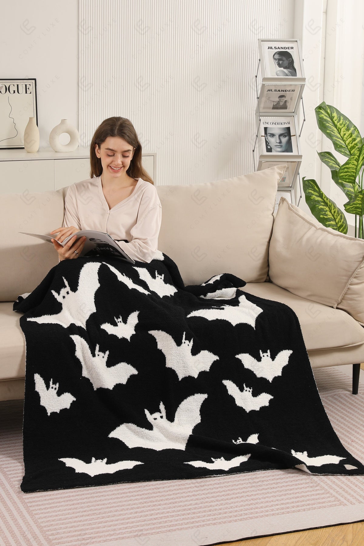 Load image into Gallery viewer, HALLOWEEN PATTERN THROW BLANKET BLACK THROW BLANKETS