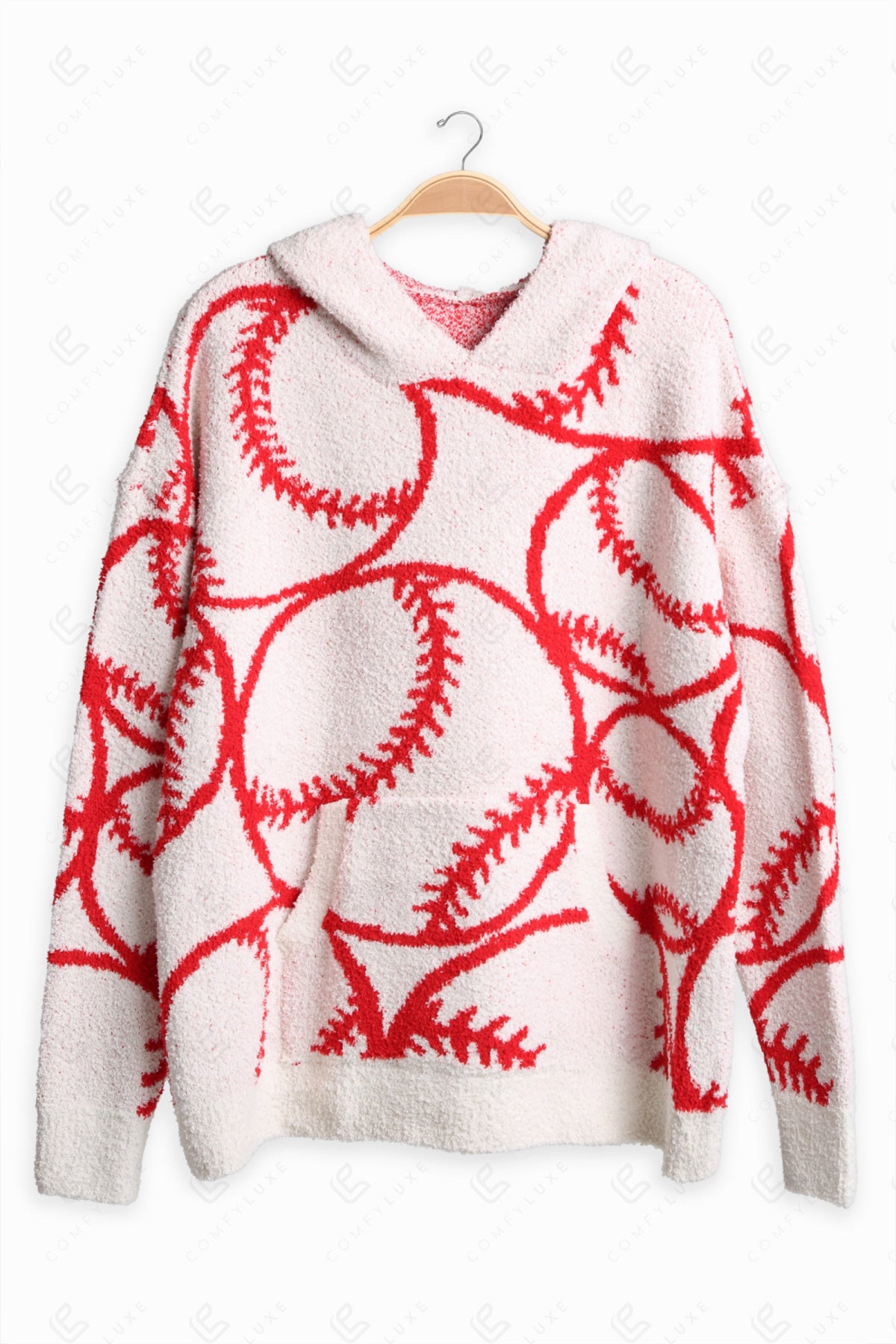 Load image into Gallery viewer, BASEBALL PATTERN HOODIE RED APPAREL