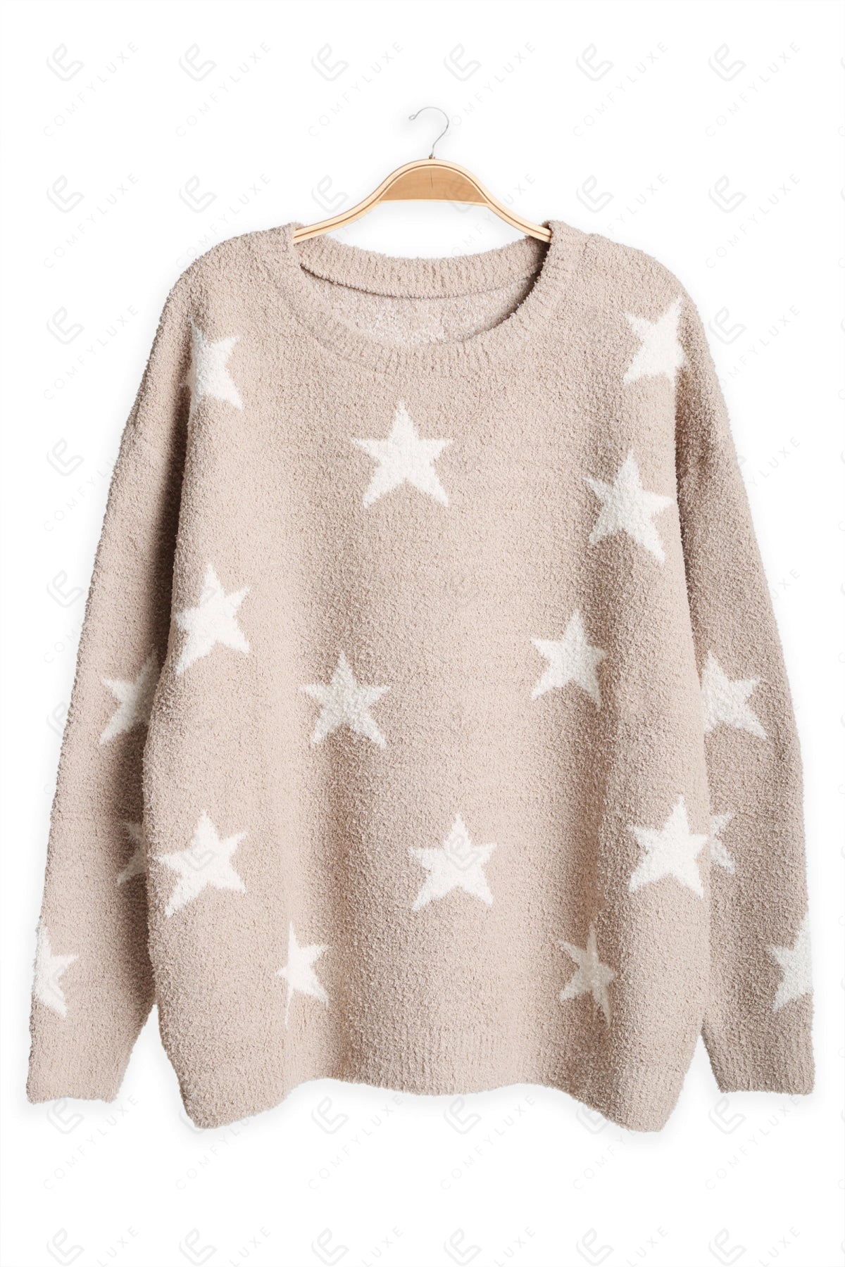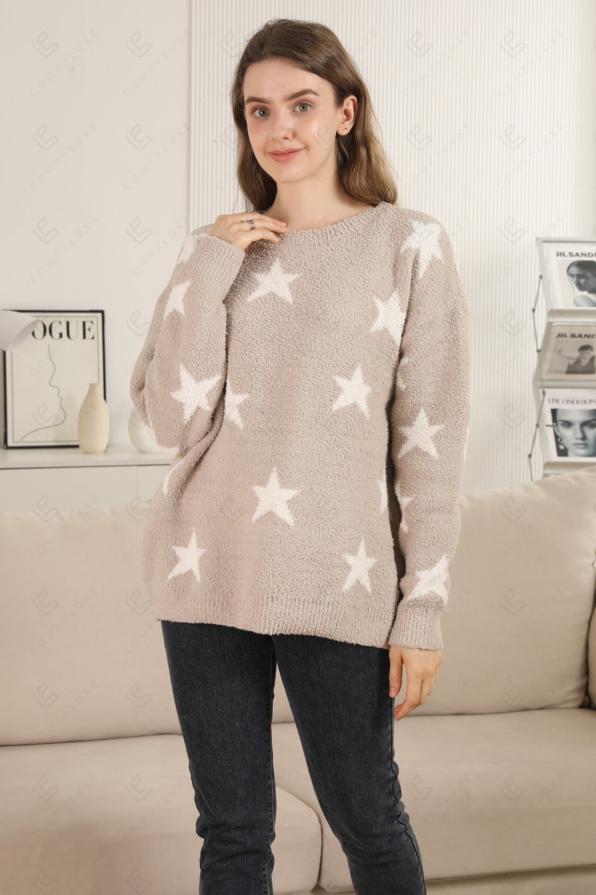 STAR PATTERN LUXURY SOFT CREW NECK, LONG-SLEEVED, SHORT SWEATER