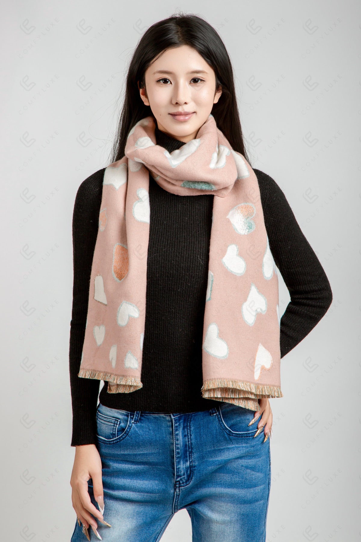 Load image into Gallery viewer, HEART PATTERN SCARF PINK SCARVES