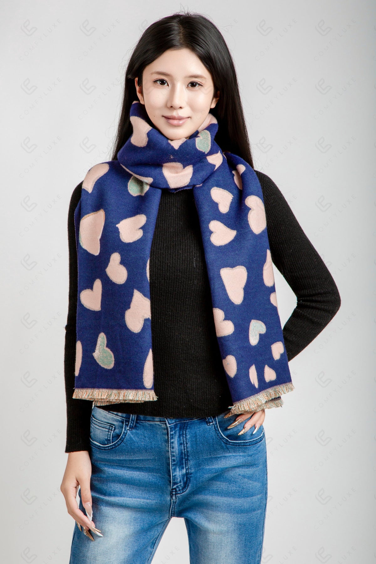 Load image into Gallery viewer, HEART PATTERN SCARF NAVY SCARVES