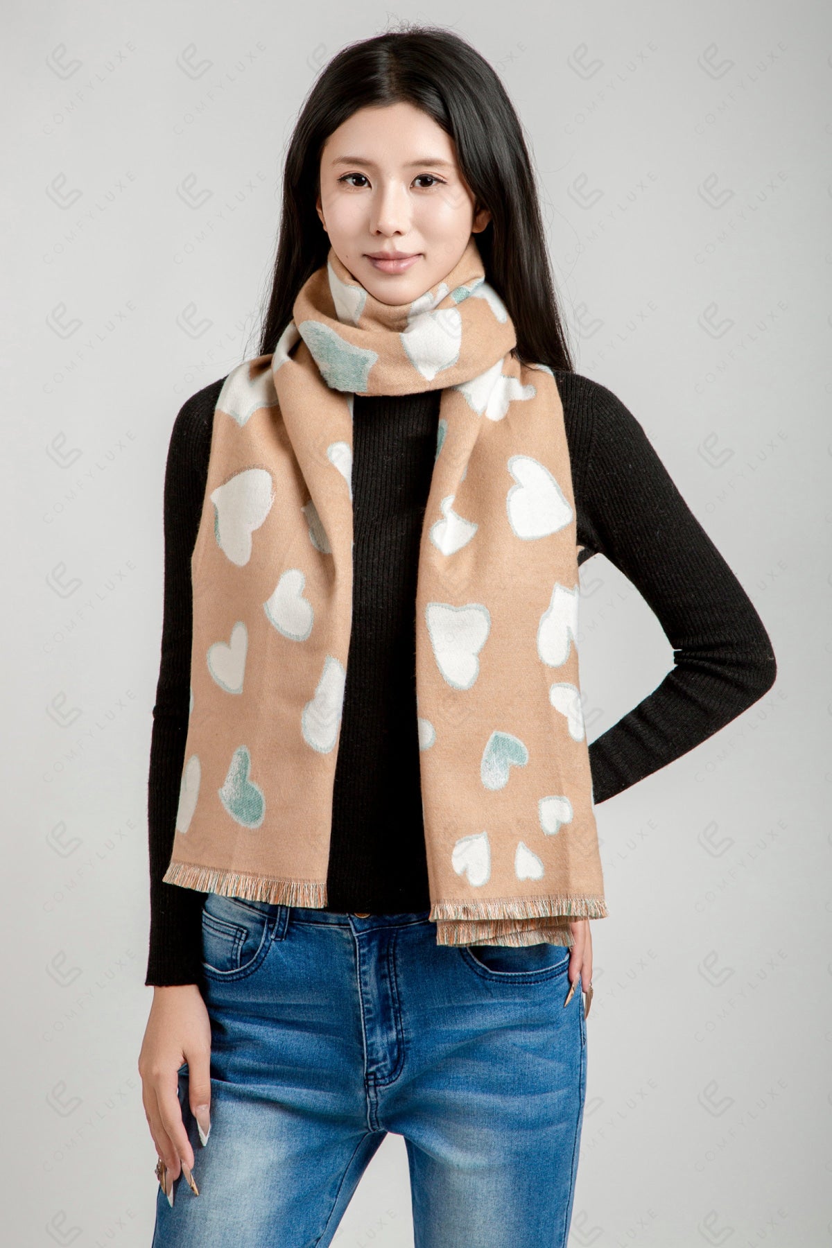 Load image into Gallery viewer, HEART PATTERN SCARF BEIGE SCARVES