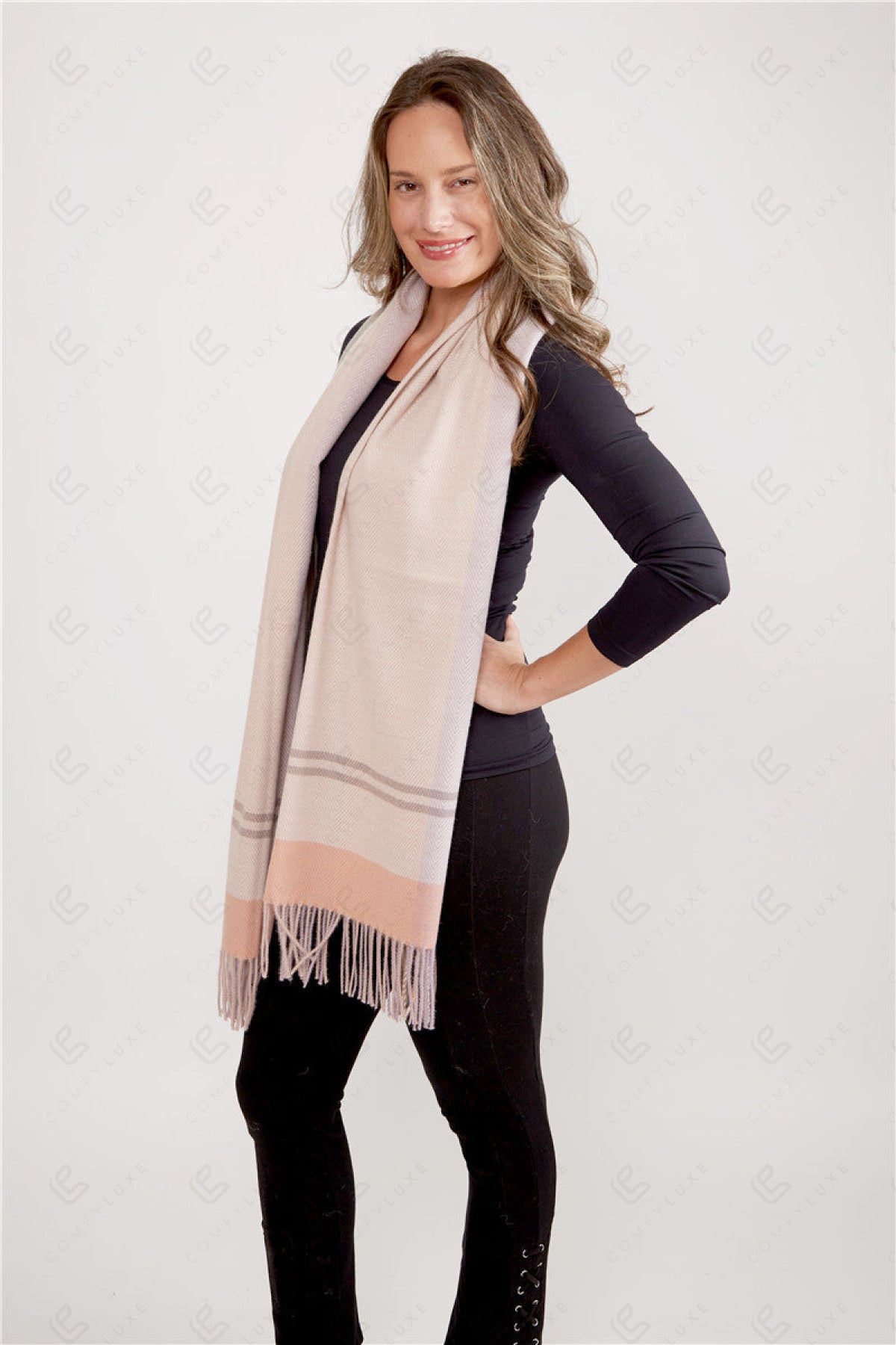 • Features: knitted and fringed edges