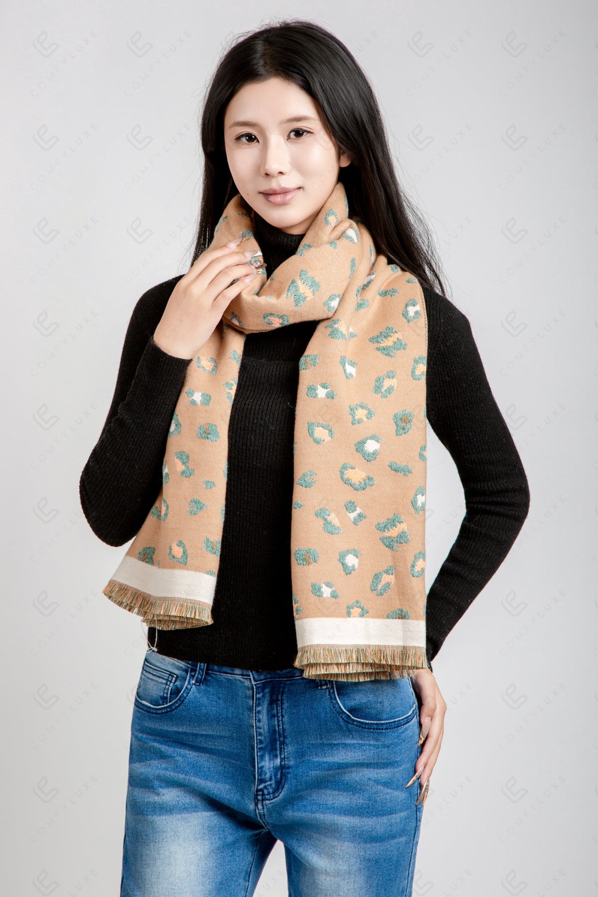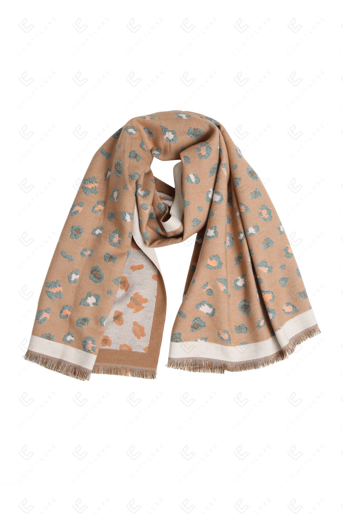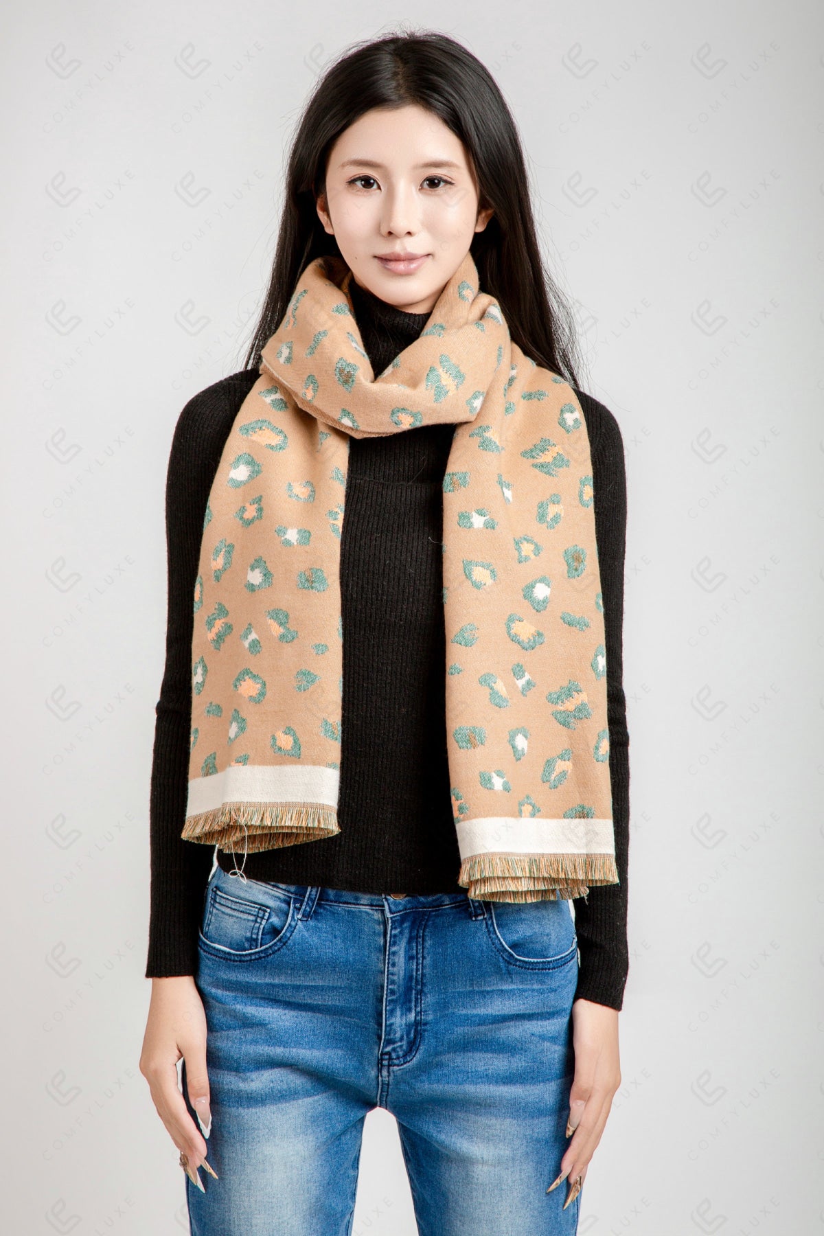 LEOPARD PATTERN OBLONG SCARF W/ SHORT TRIM