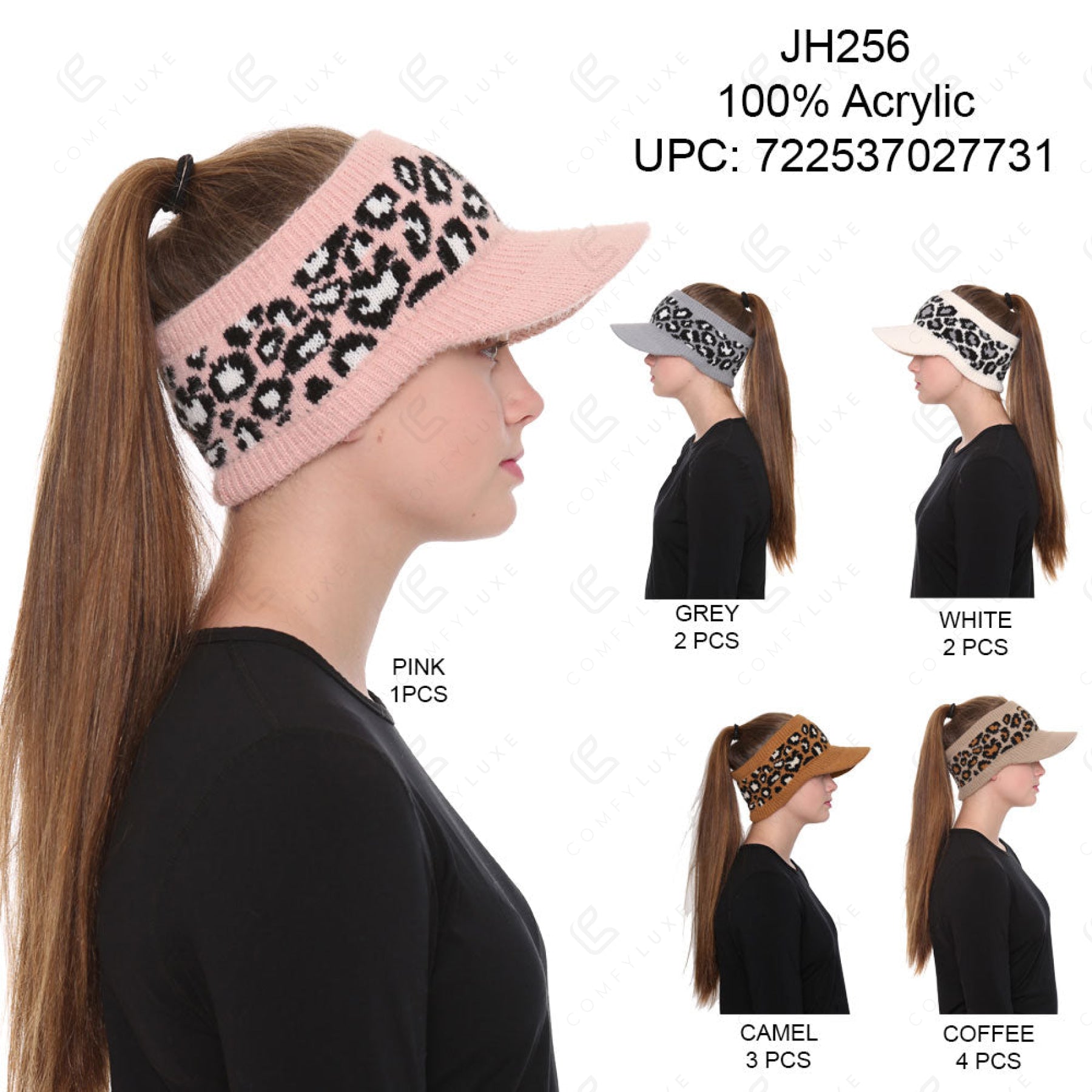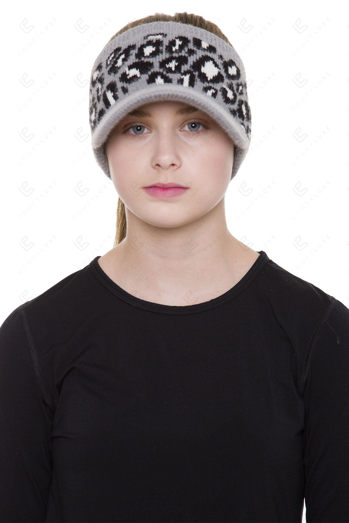 LEOPARD PATTERN KNITTED PONYTAIL VISOR HAT