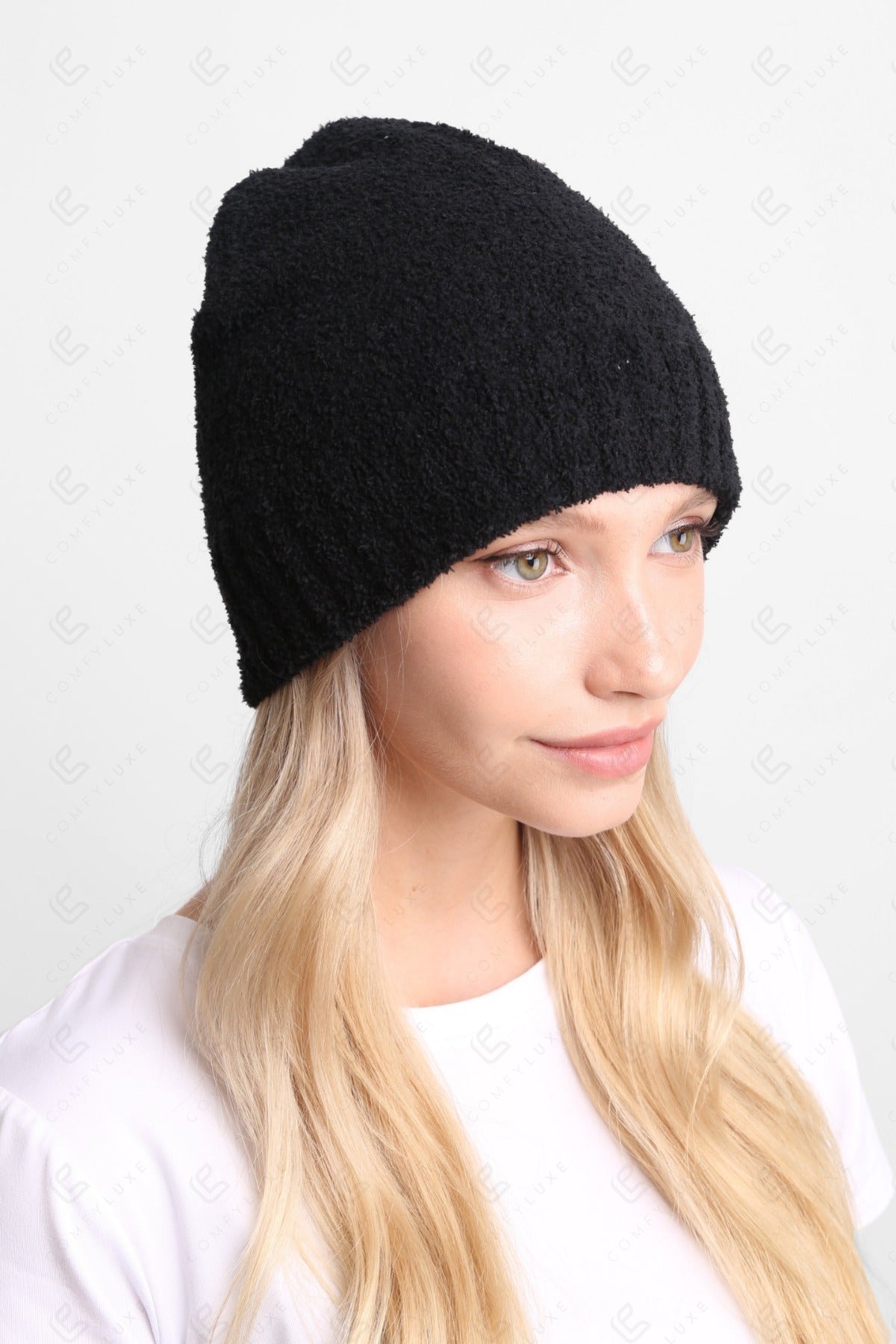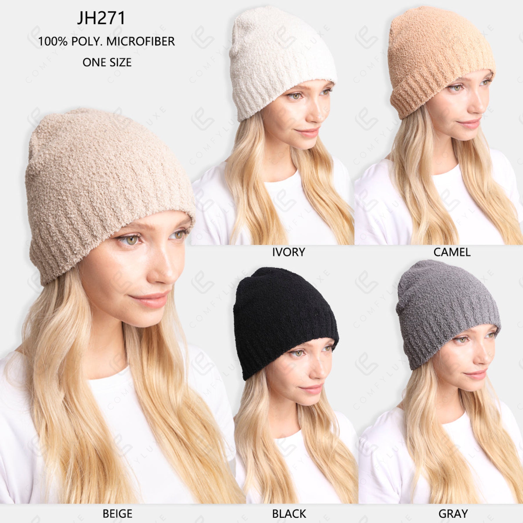 SOLID COLOR LUXURY SOFT BEANIE W/ RIBBED TRIM