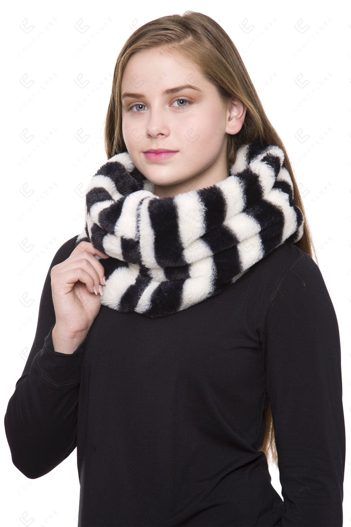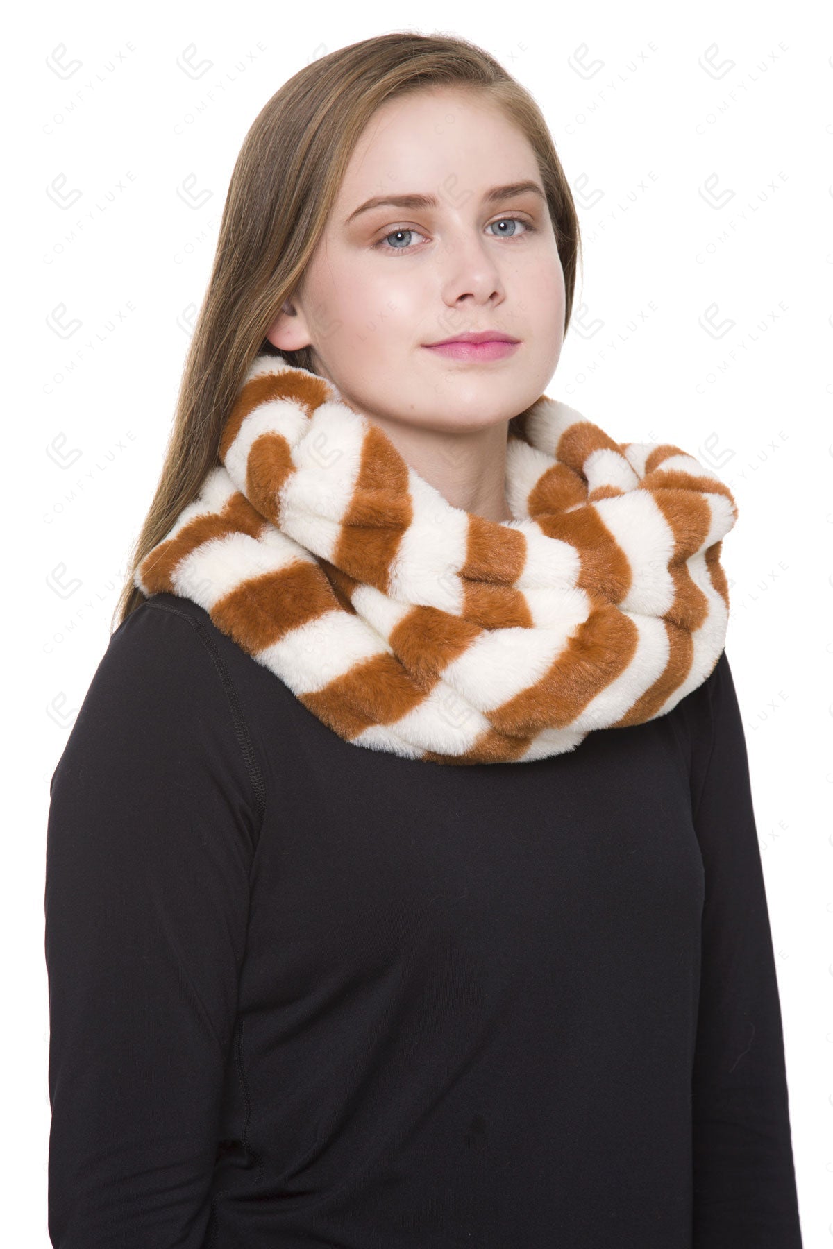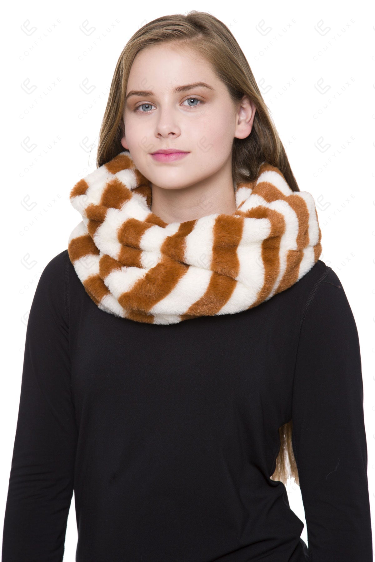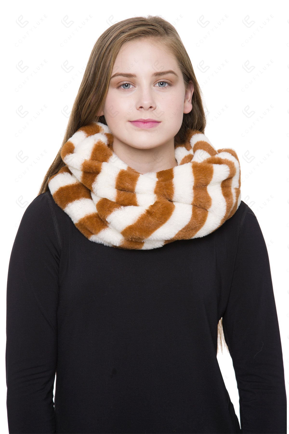 STRIPED PATTERN FAUX FUR INFINITY SCARF
