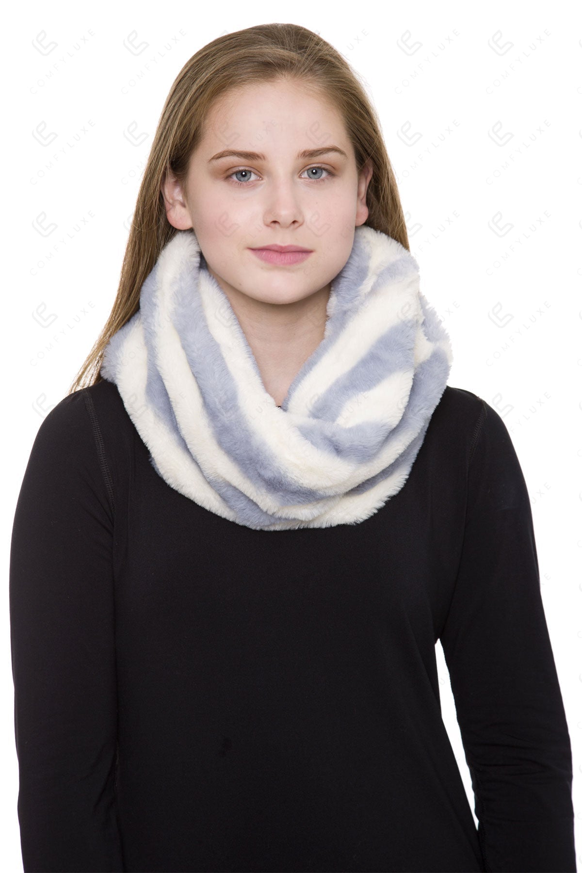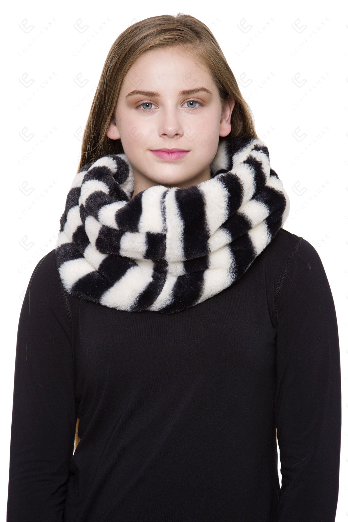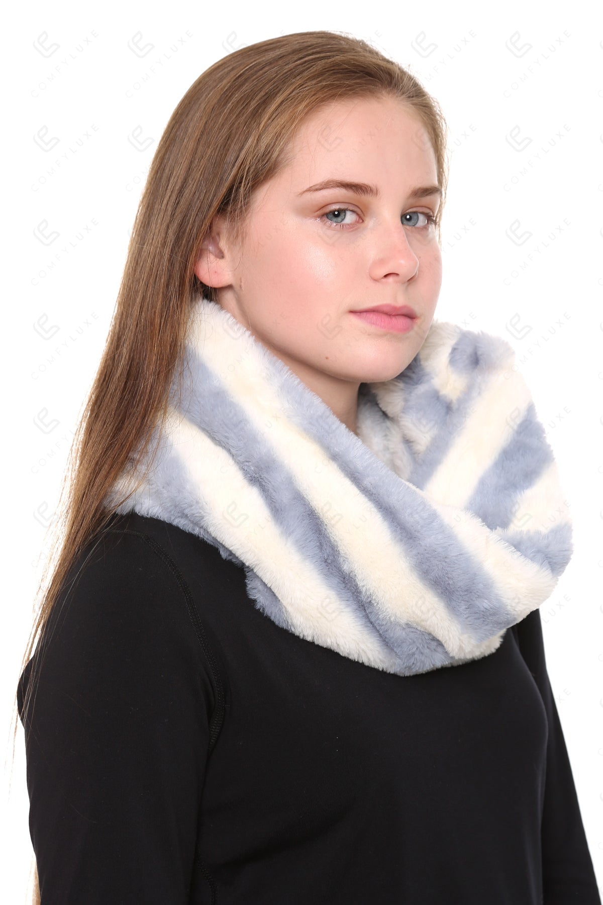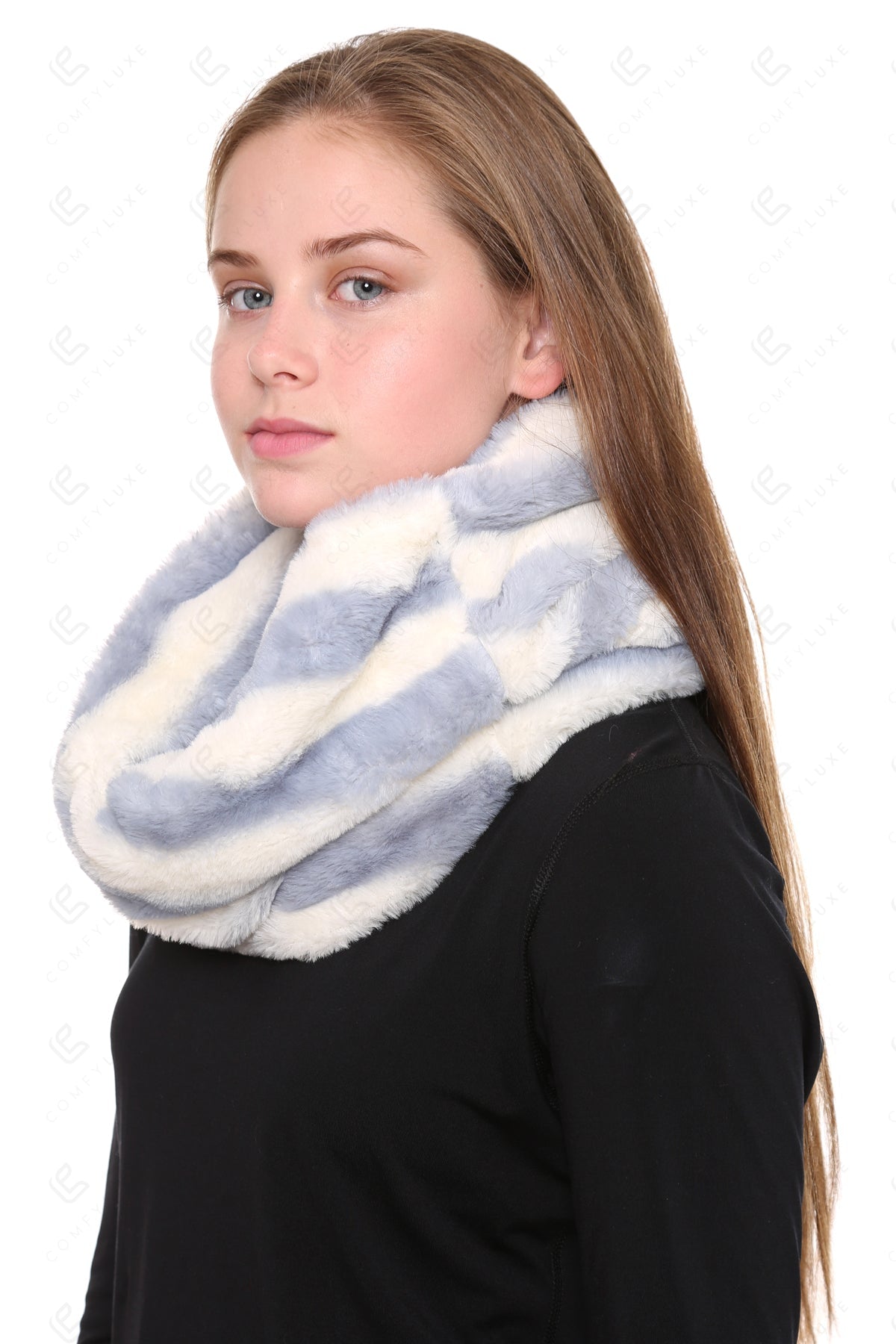 STRIPED PATTERN FAUX FUR INFINITY SCARF