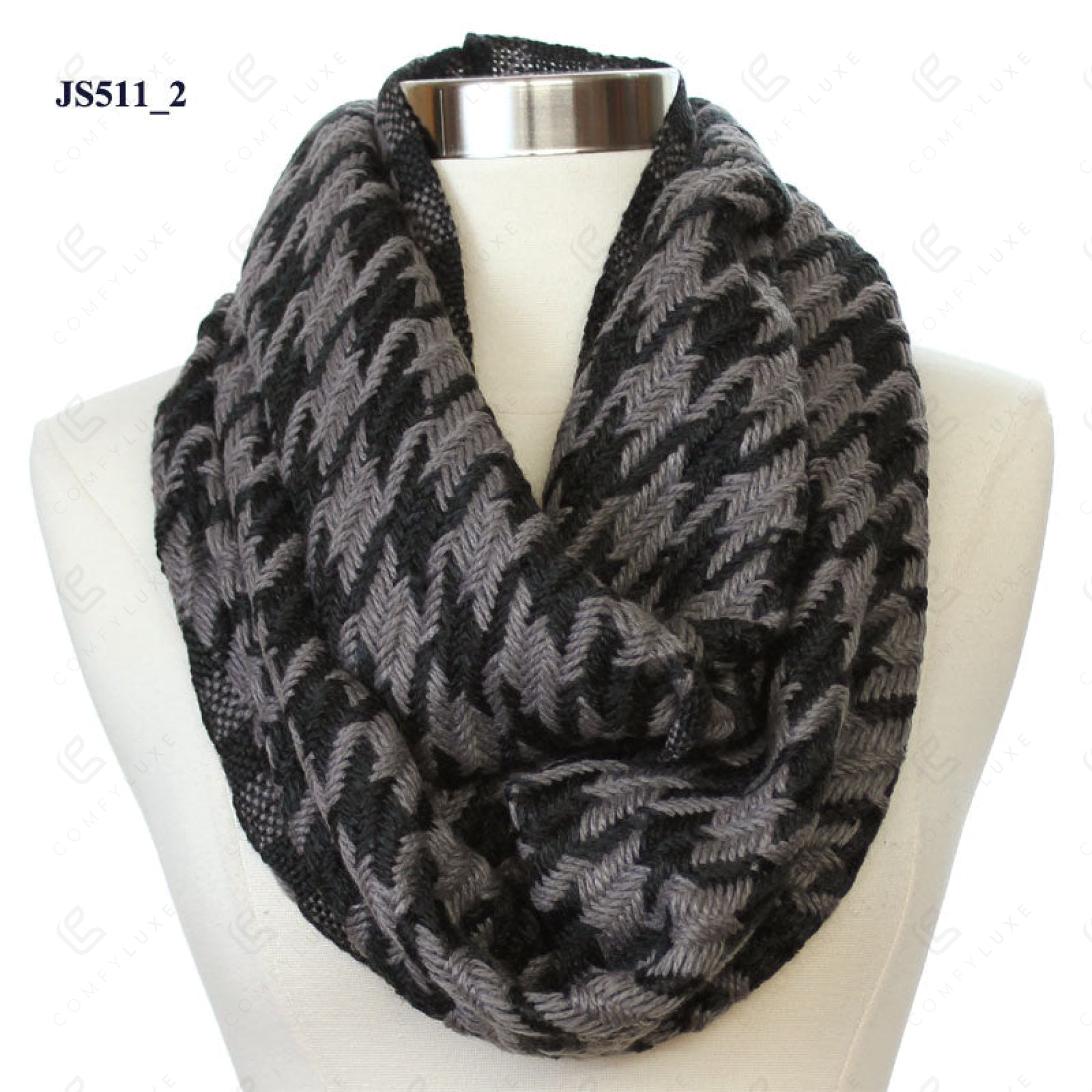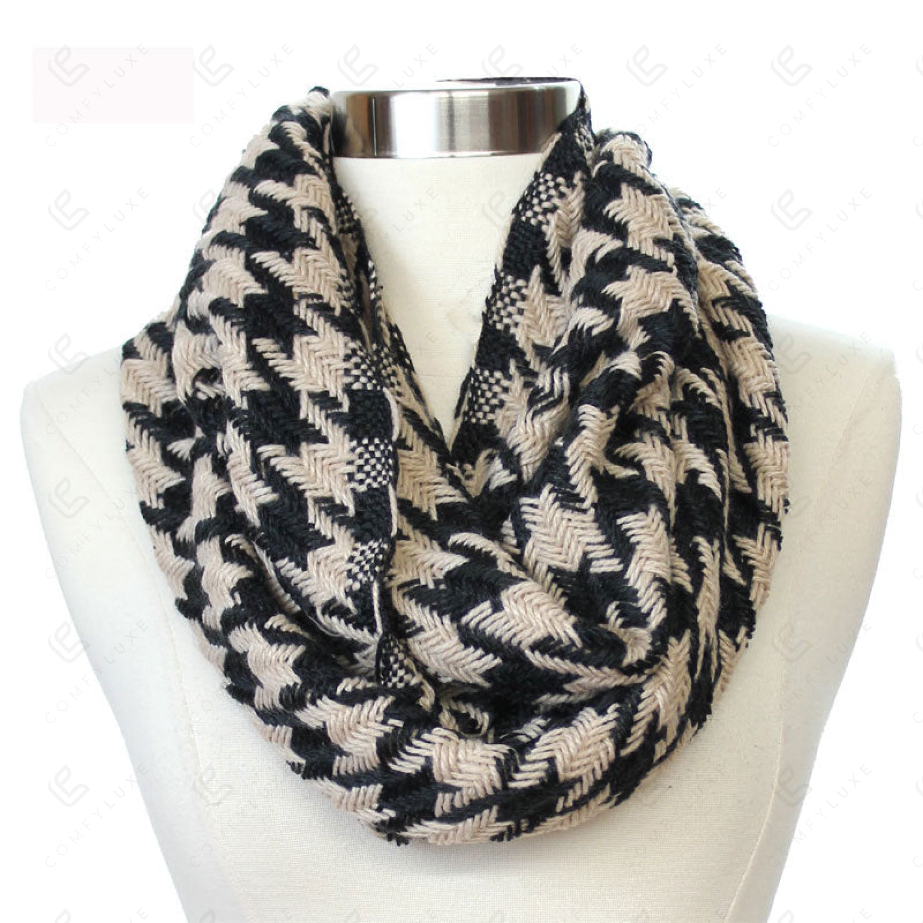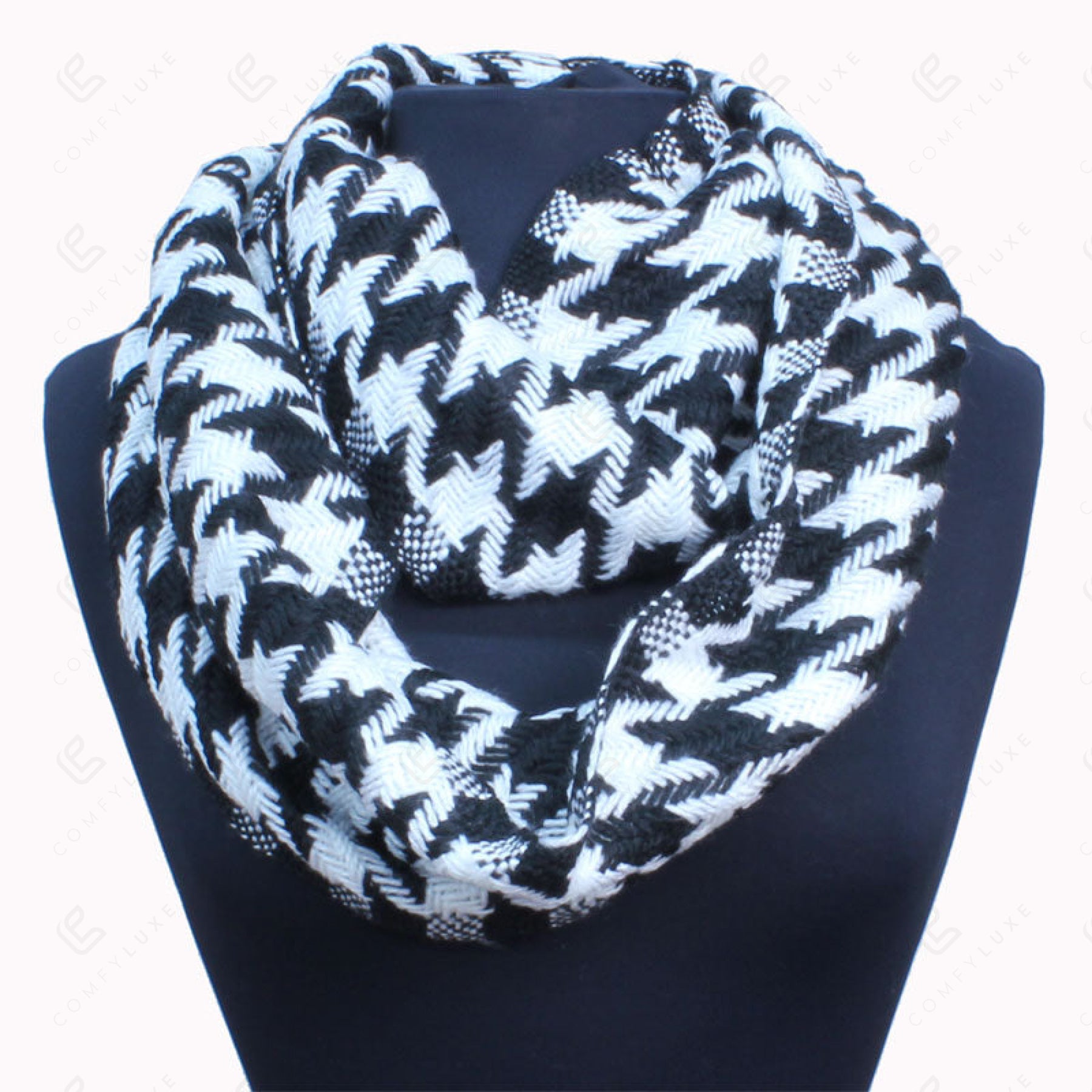 HOUNDSTOOTH PATTERN KNITTED INFINITY SCARF