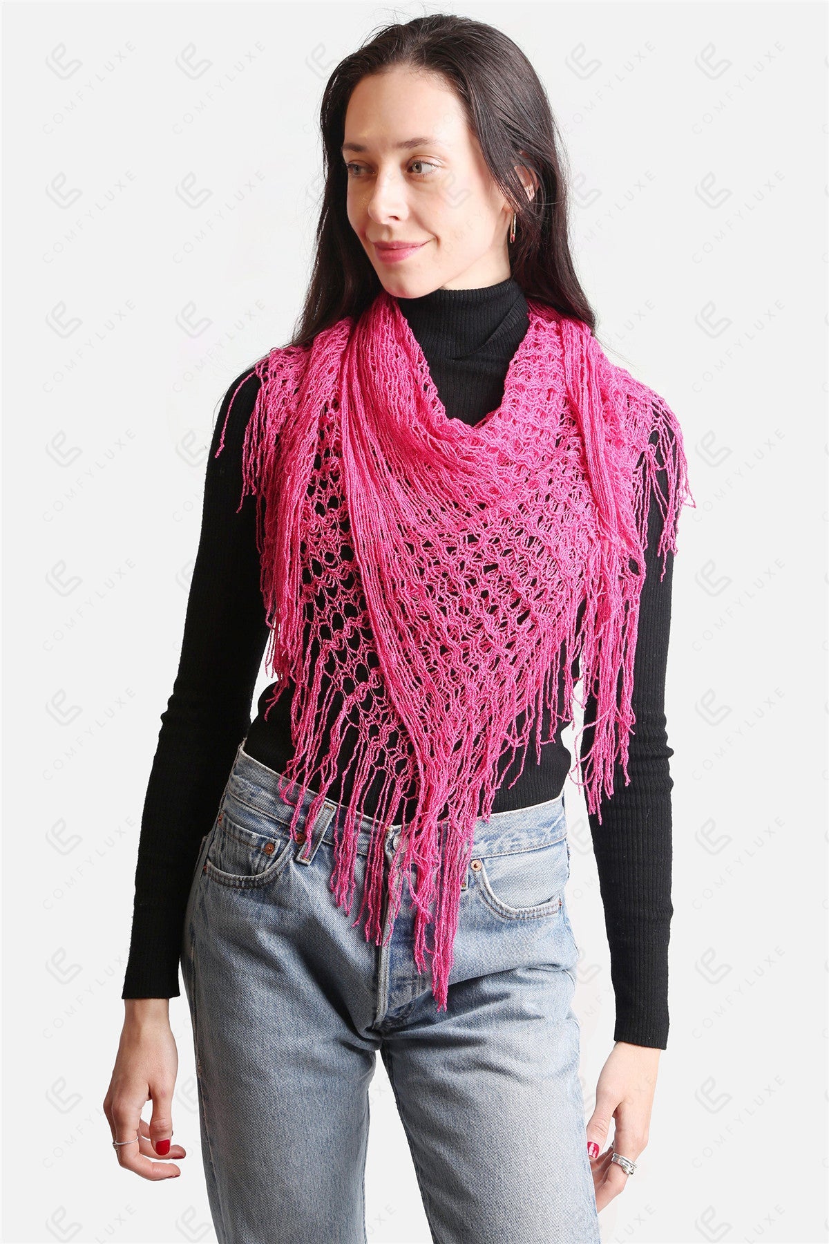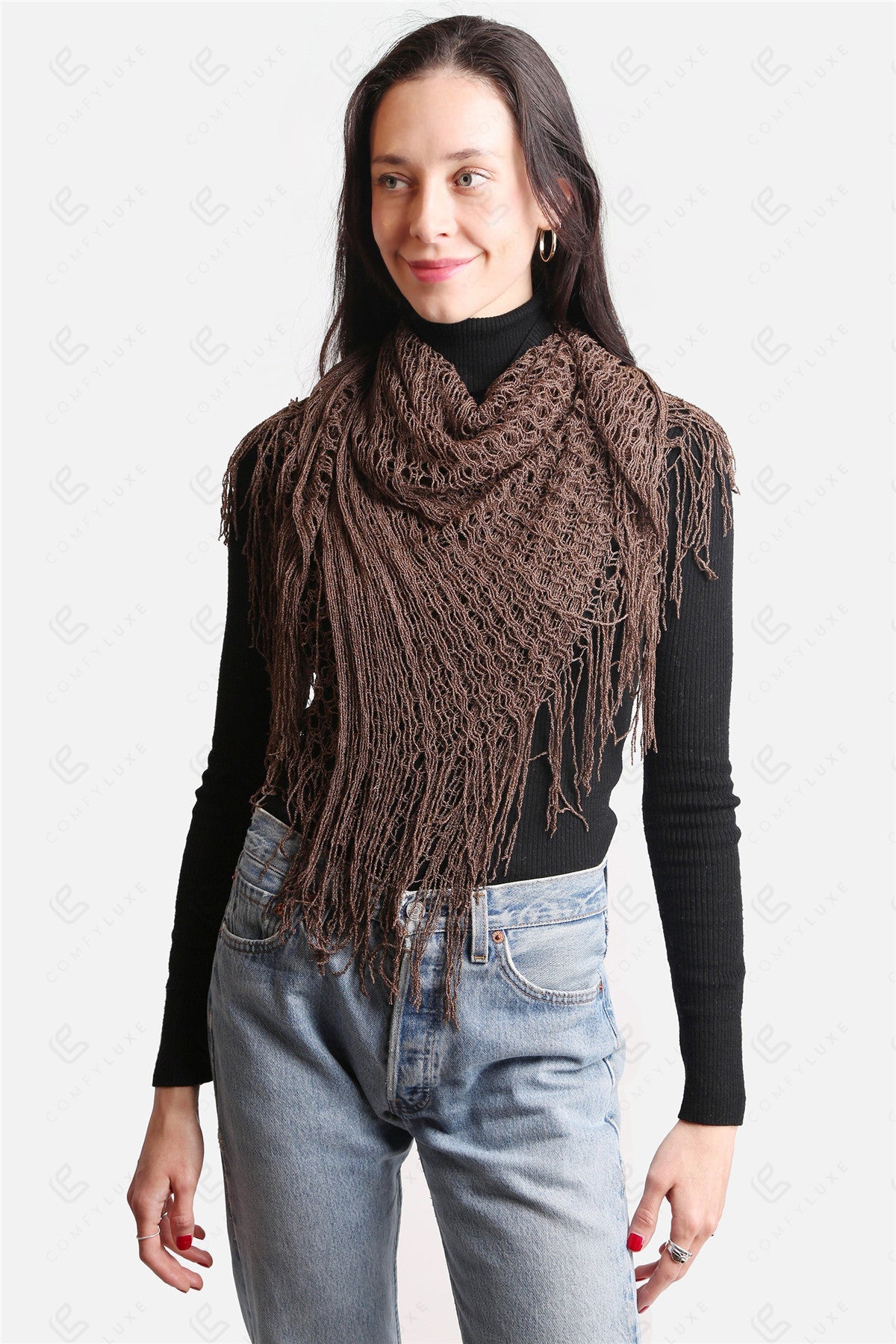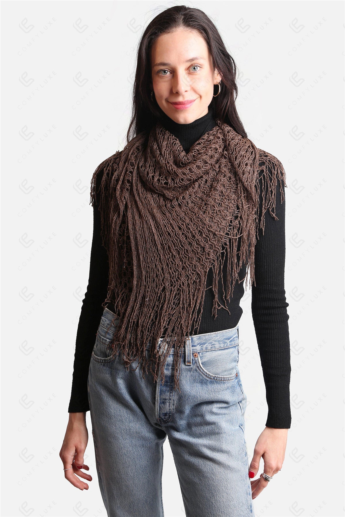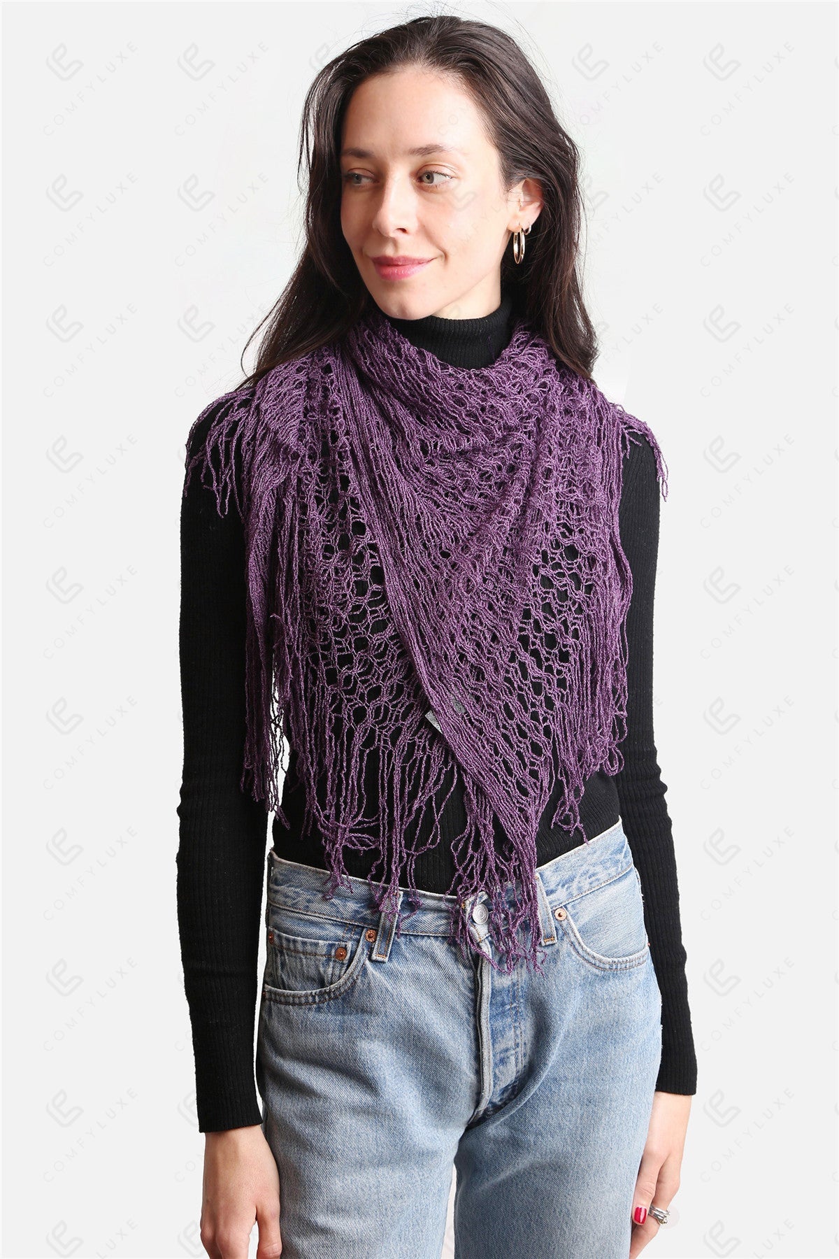 SOLID COLOR FISHNET INFINITY SCARF W/ FRINGE