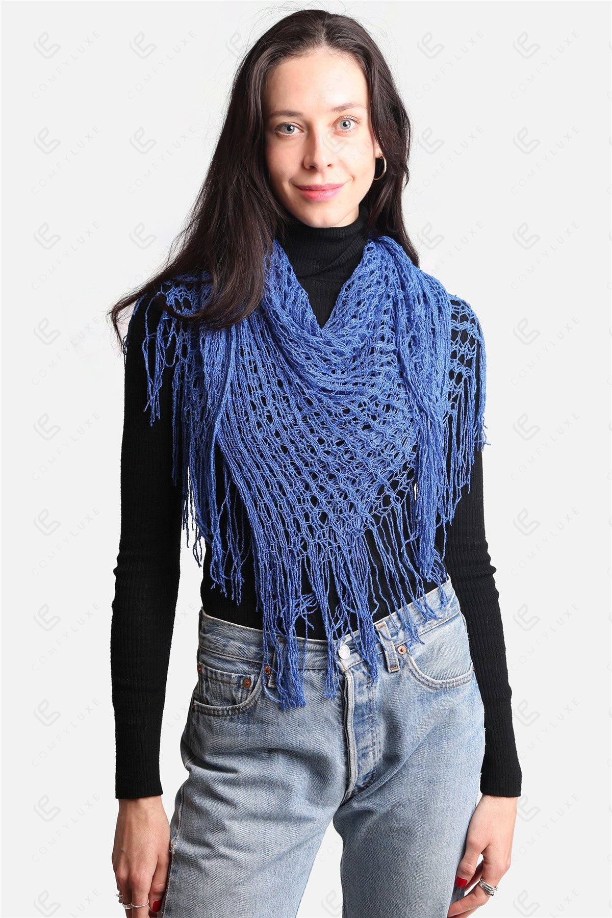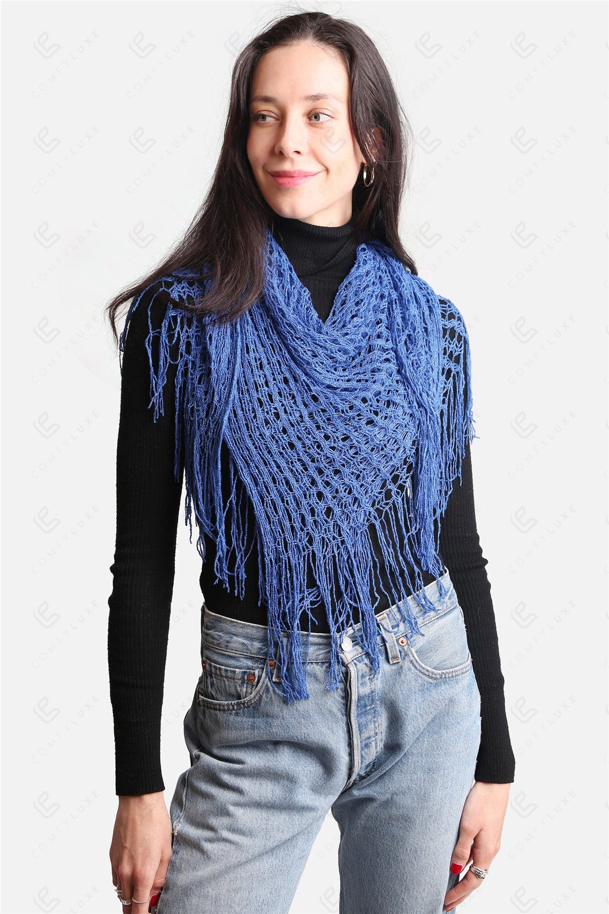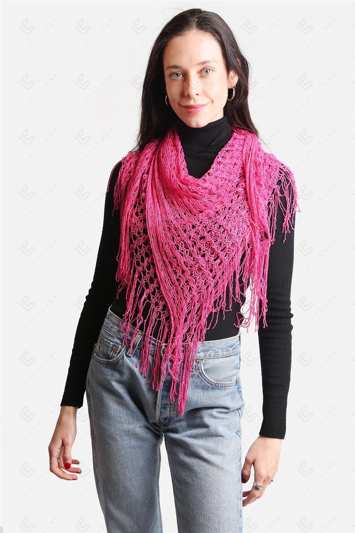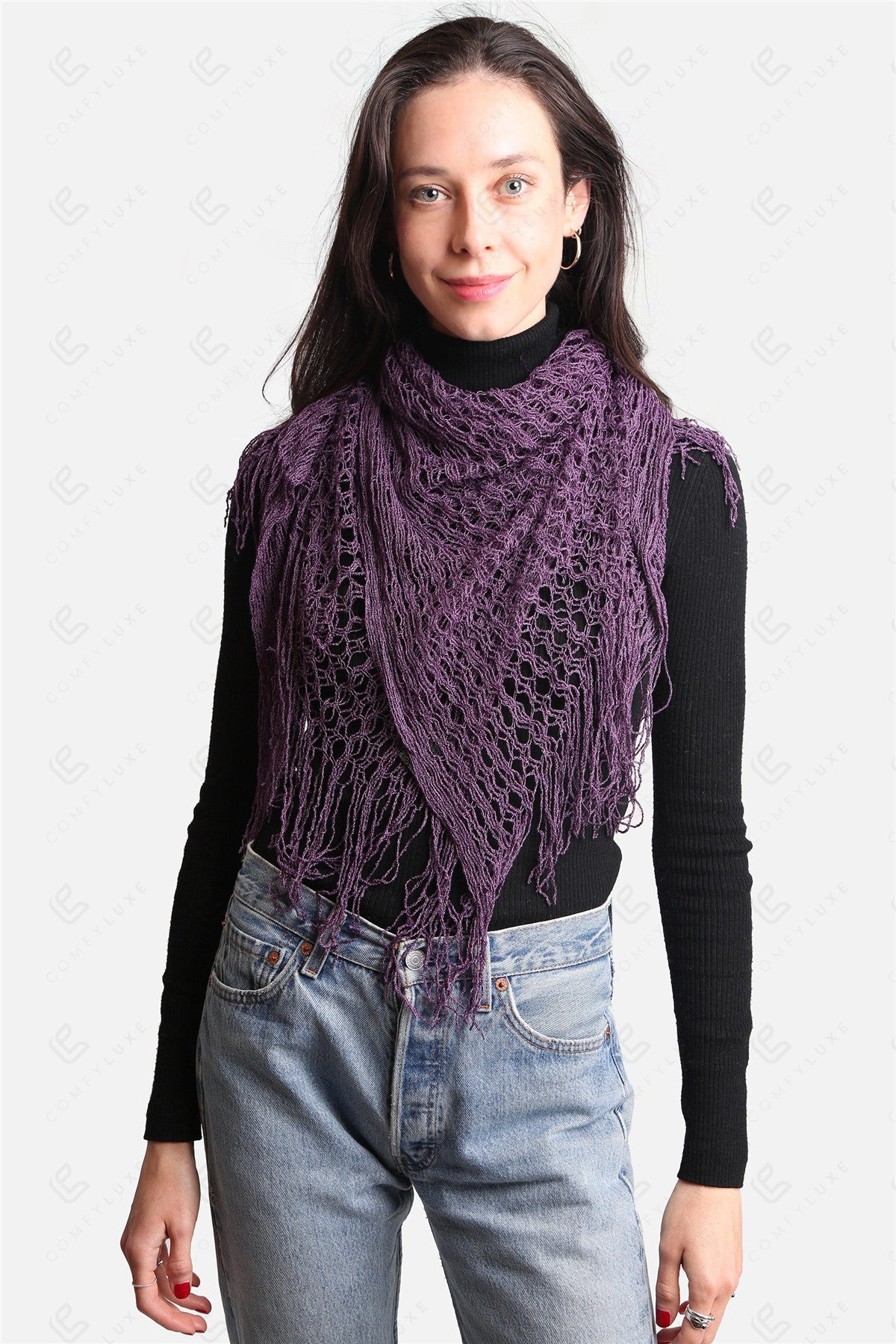 SOLID COLOR FISHNET INFINITY SCARF W/ FRINGE