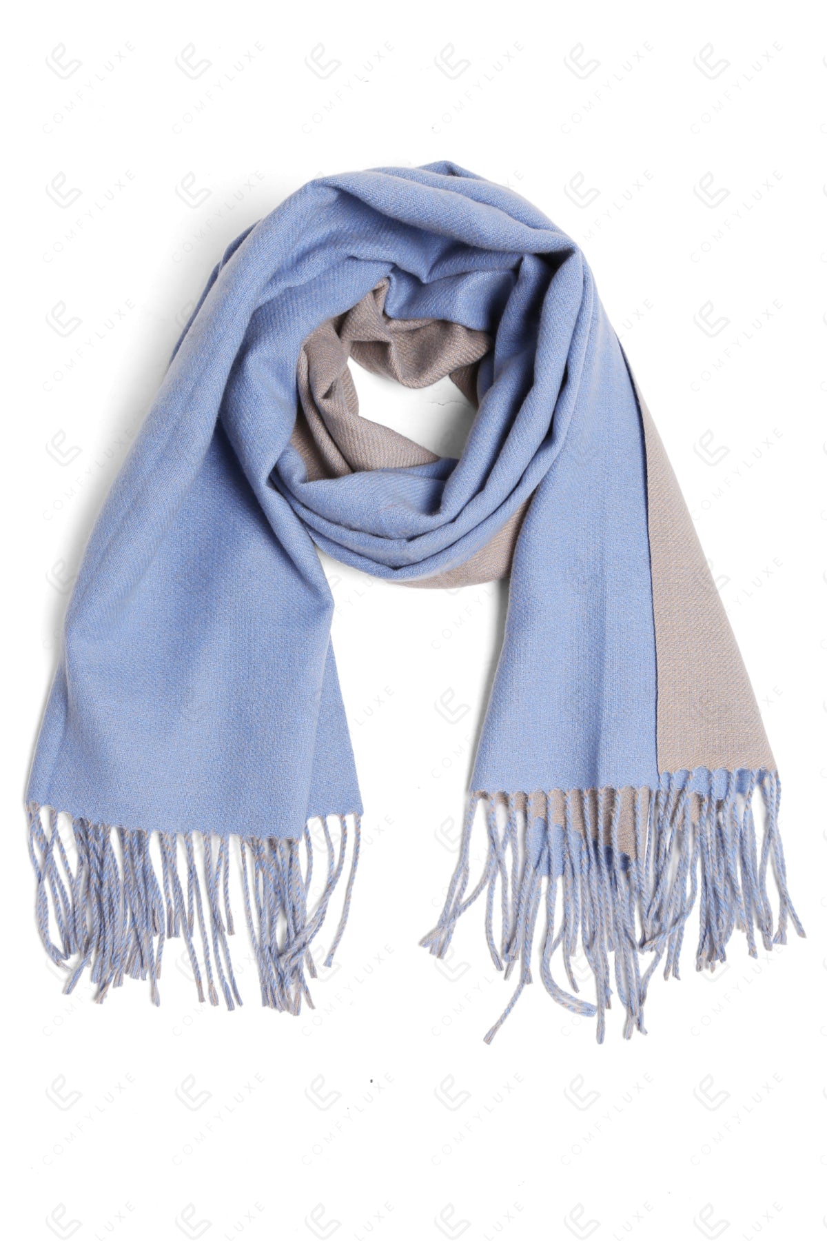 DUAL-COLORED OBLONG SCARF W/ FRINGE