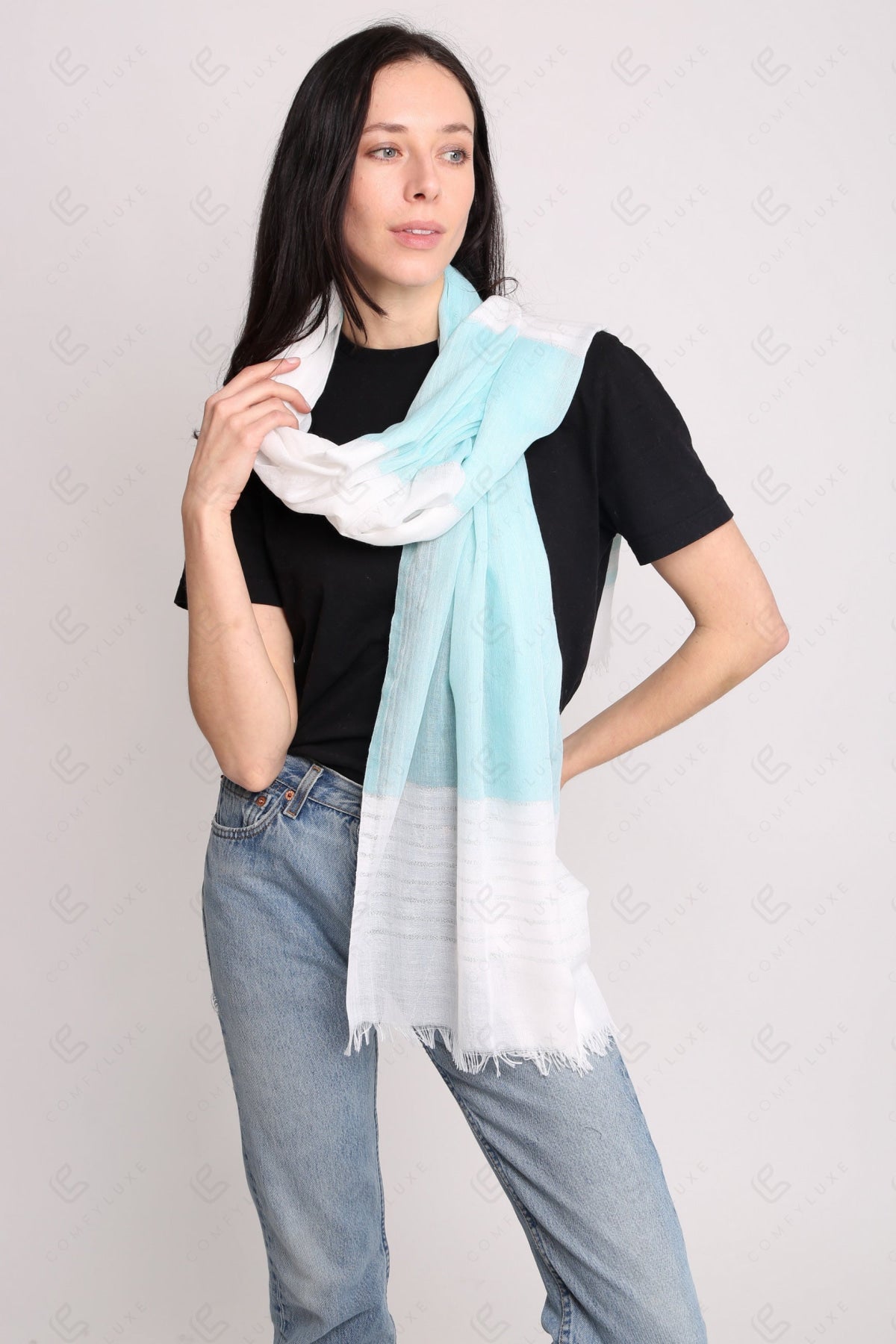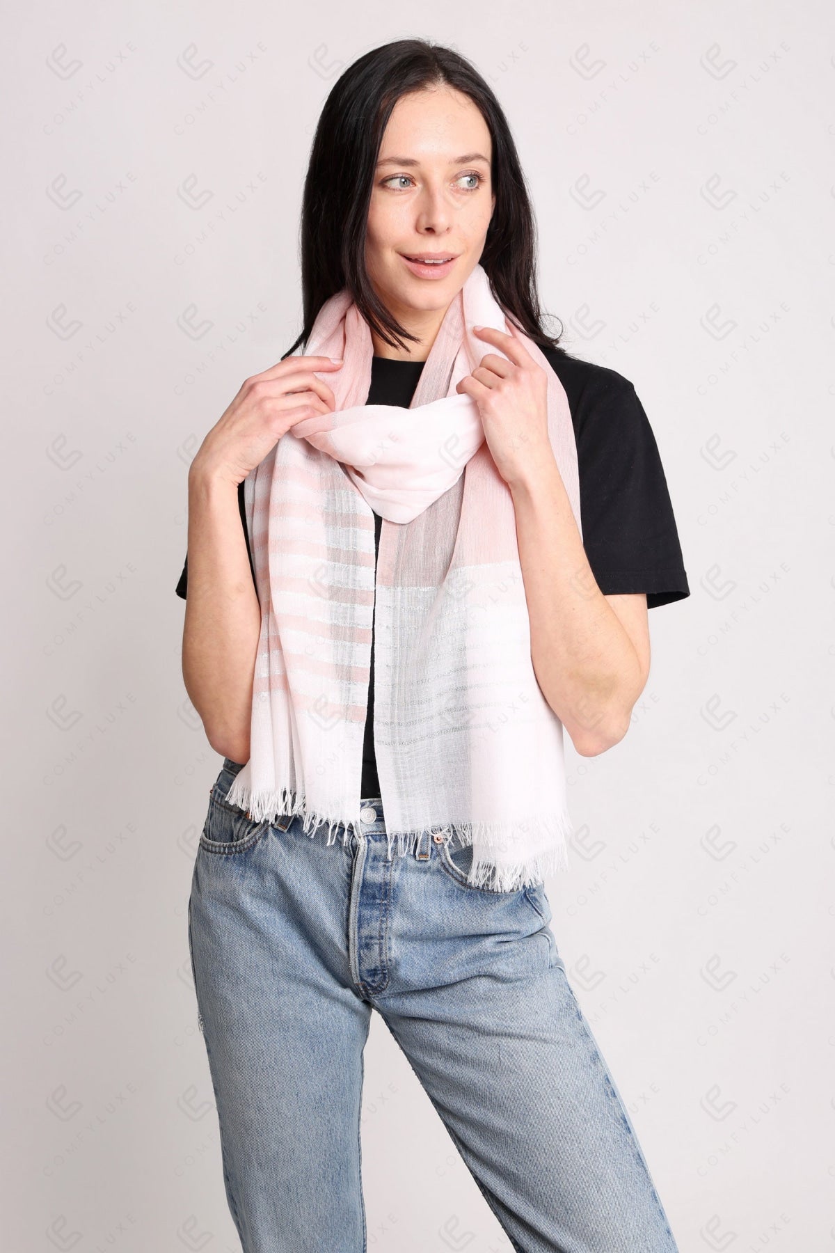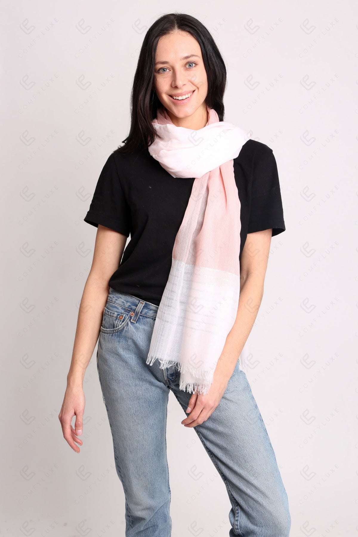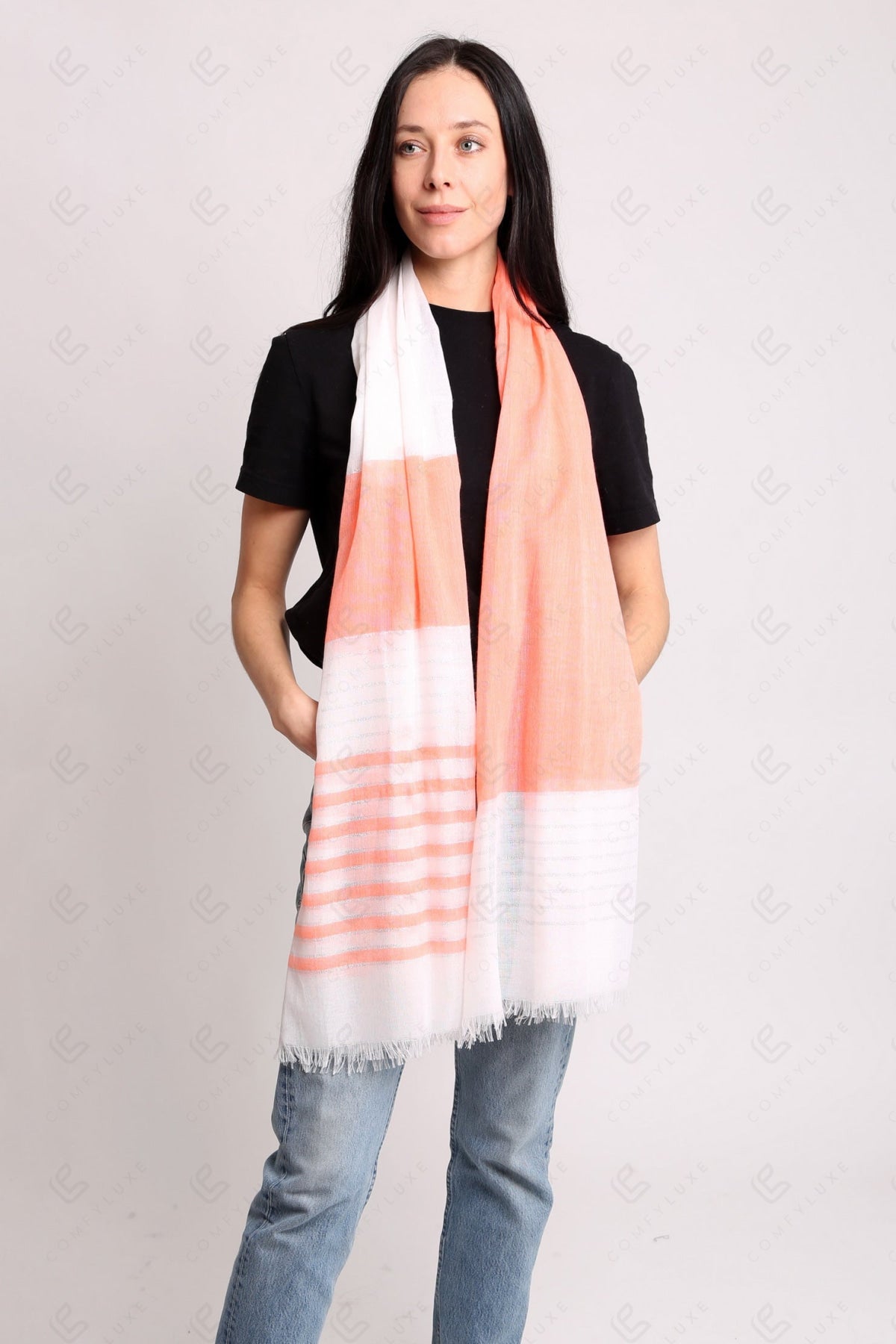 STRIPED PATTERN OBLONG SCARF W/ LUREX DETAILING & SHORT TRIM