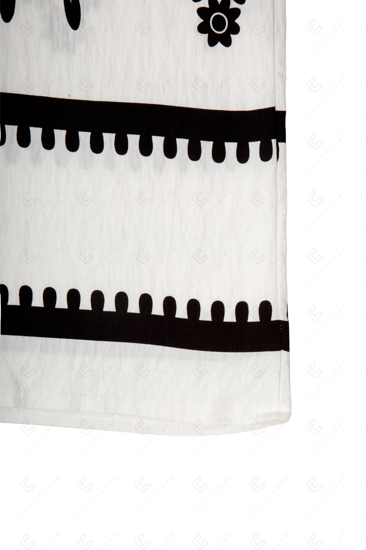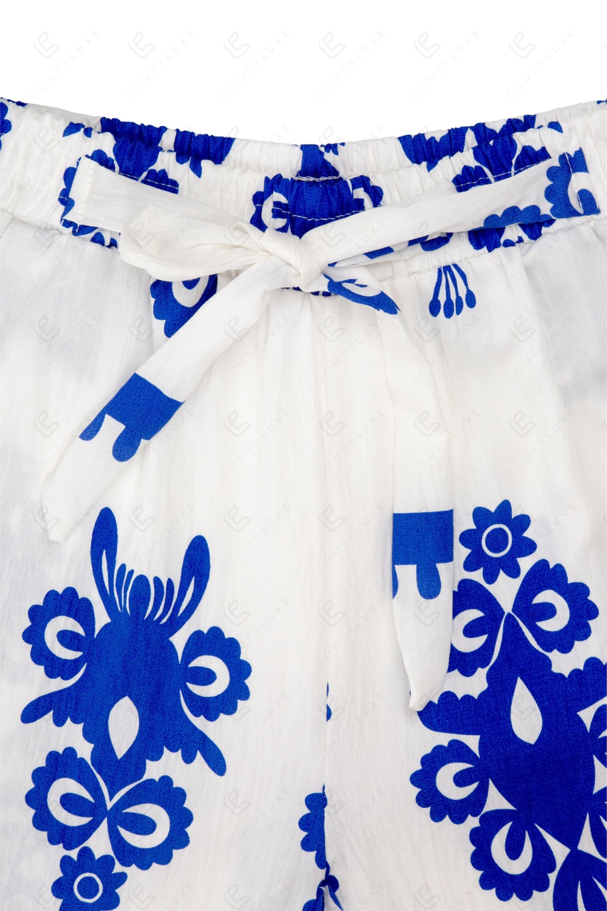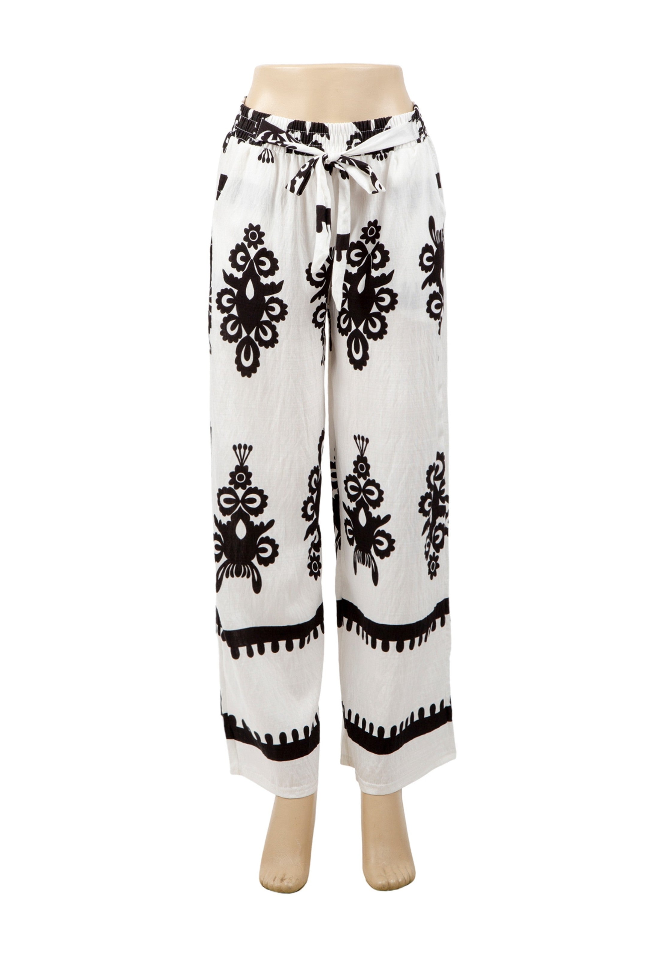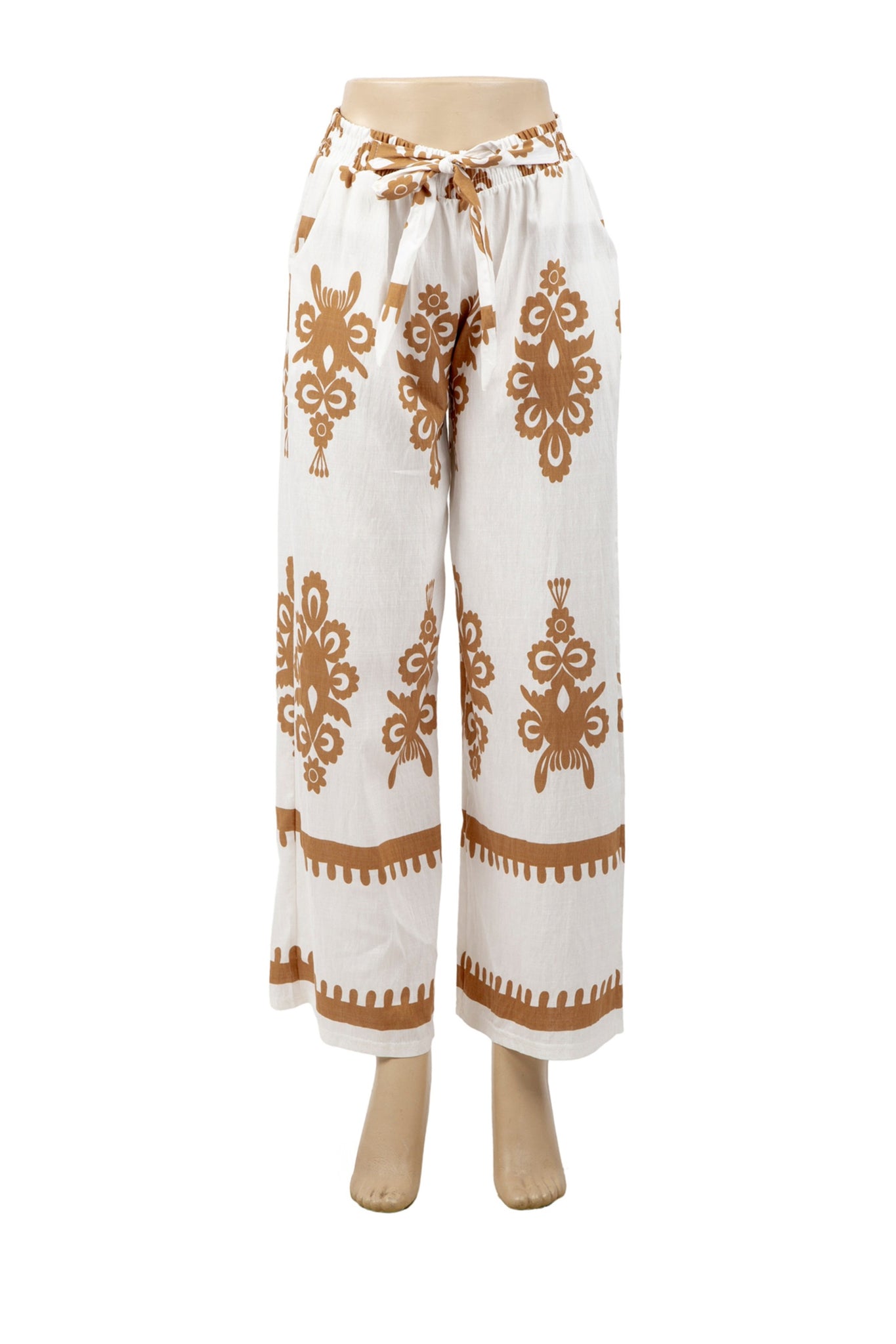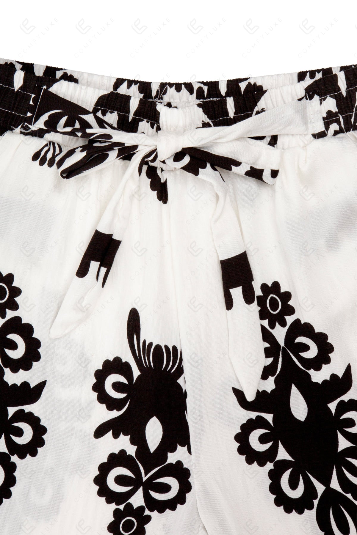 BOHO FLORAL PATTERN WIDE-LEG PANTS W/ TIE-KNOT STRING & POCKETS