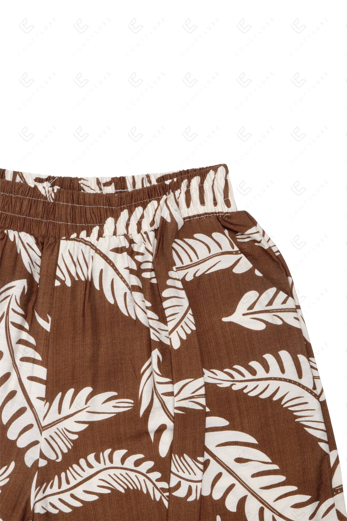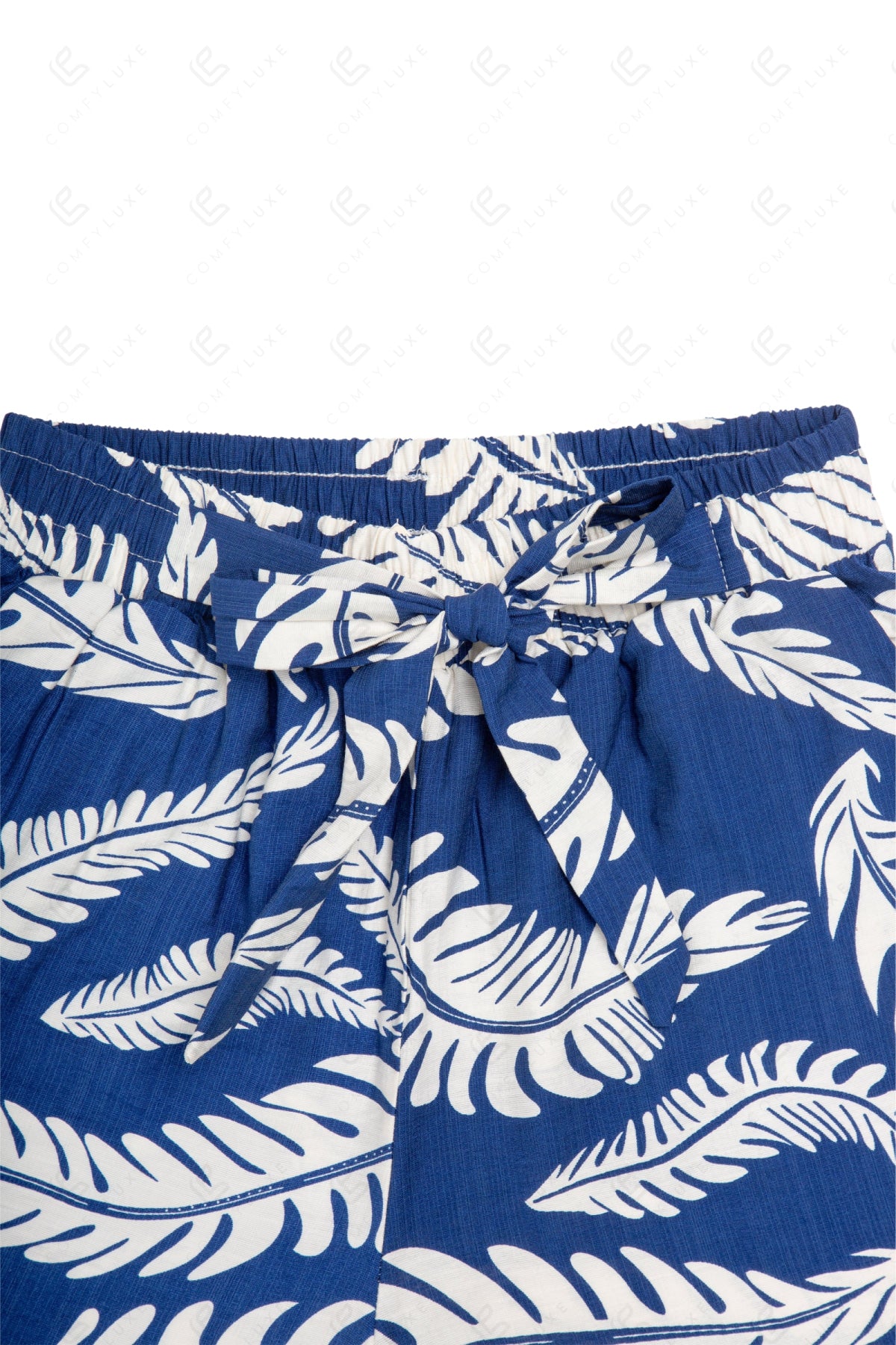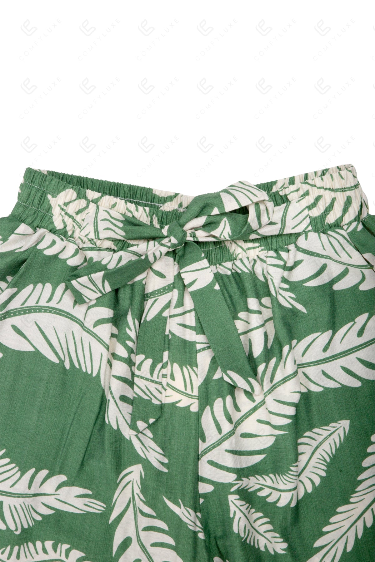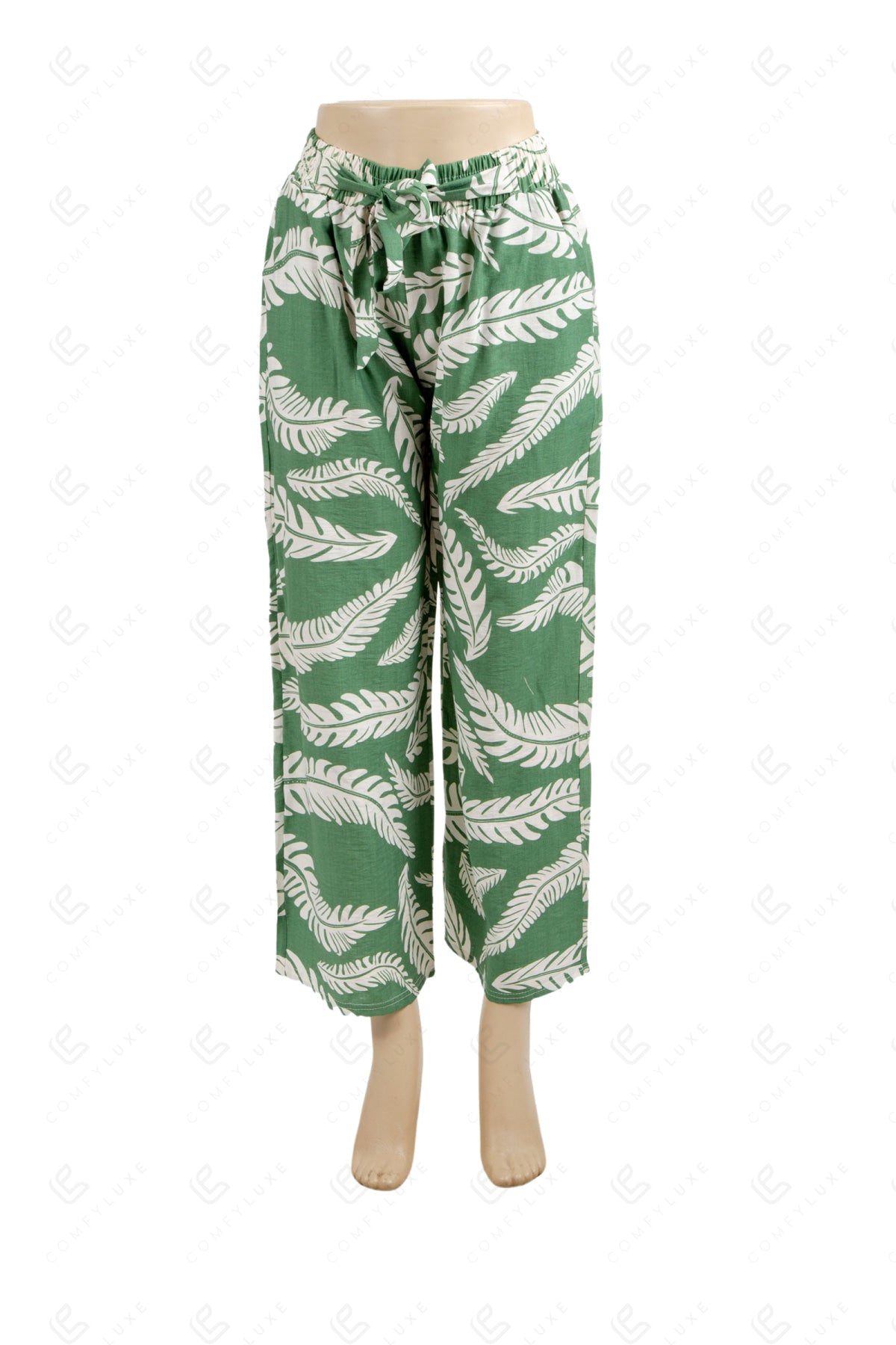 LEAF PATTERN WIDE-LEG PANTS W/ TIE-KNOT STRING & POCKETS