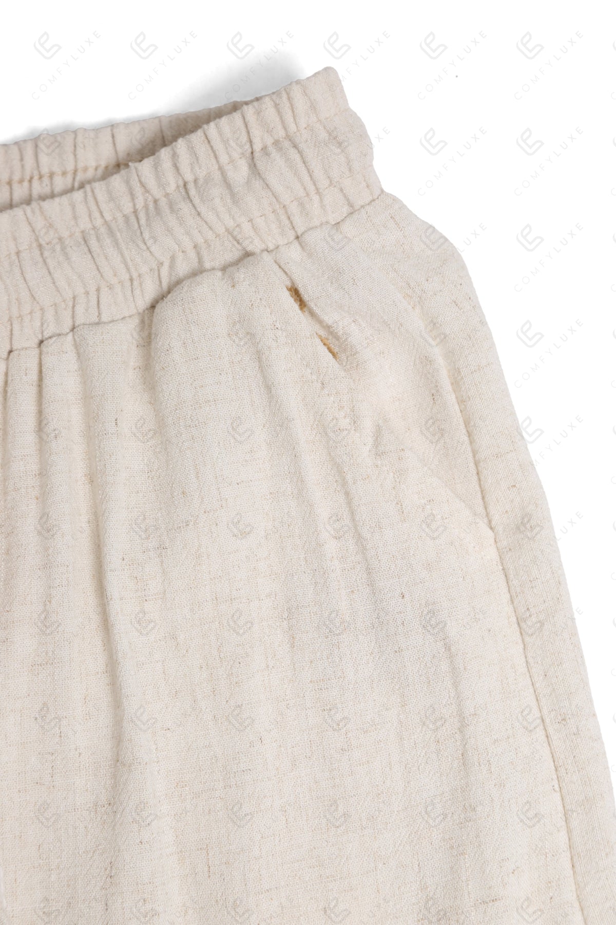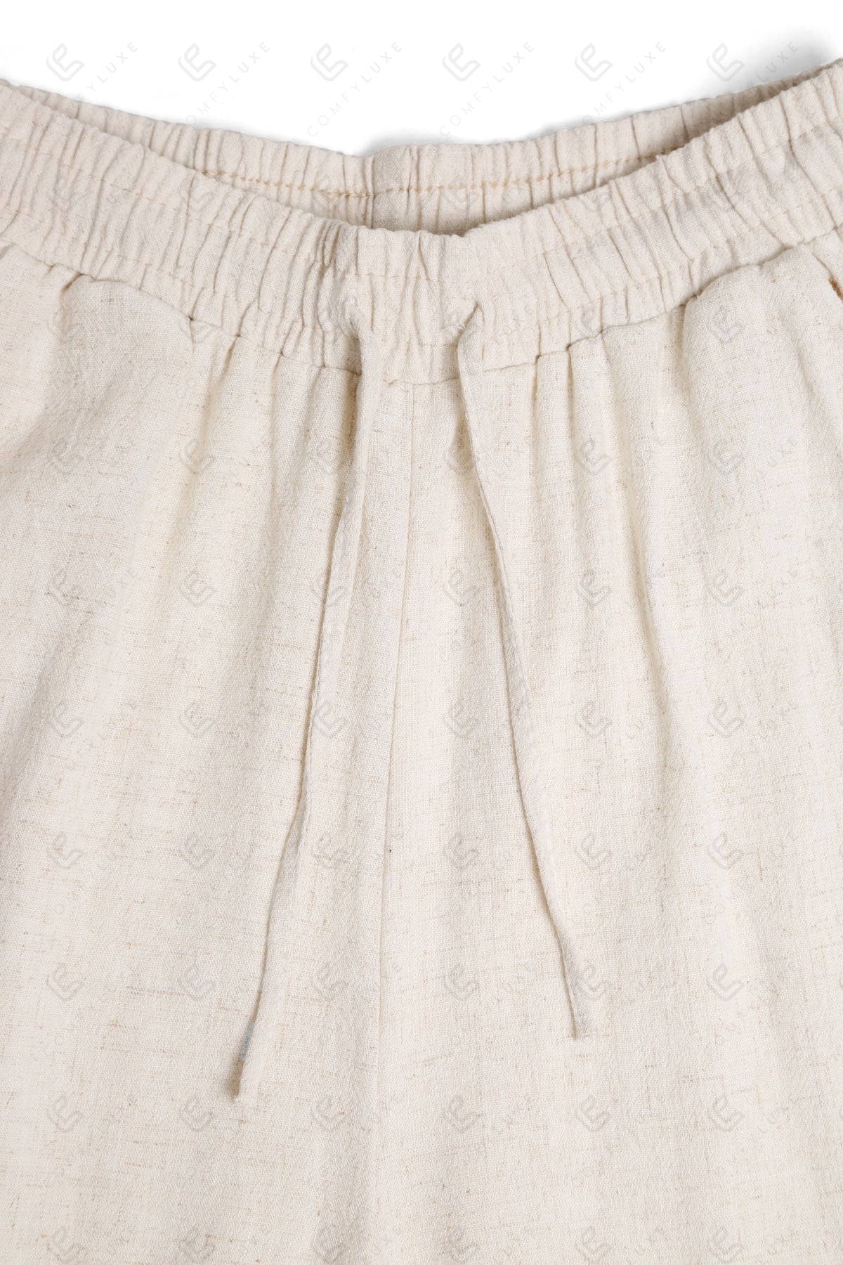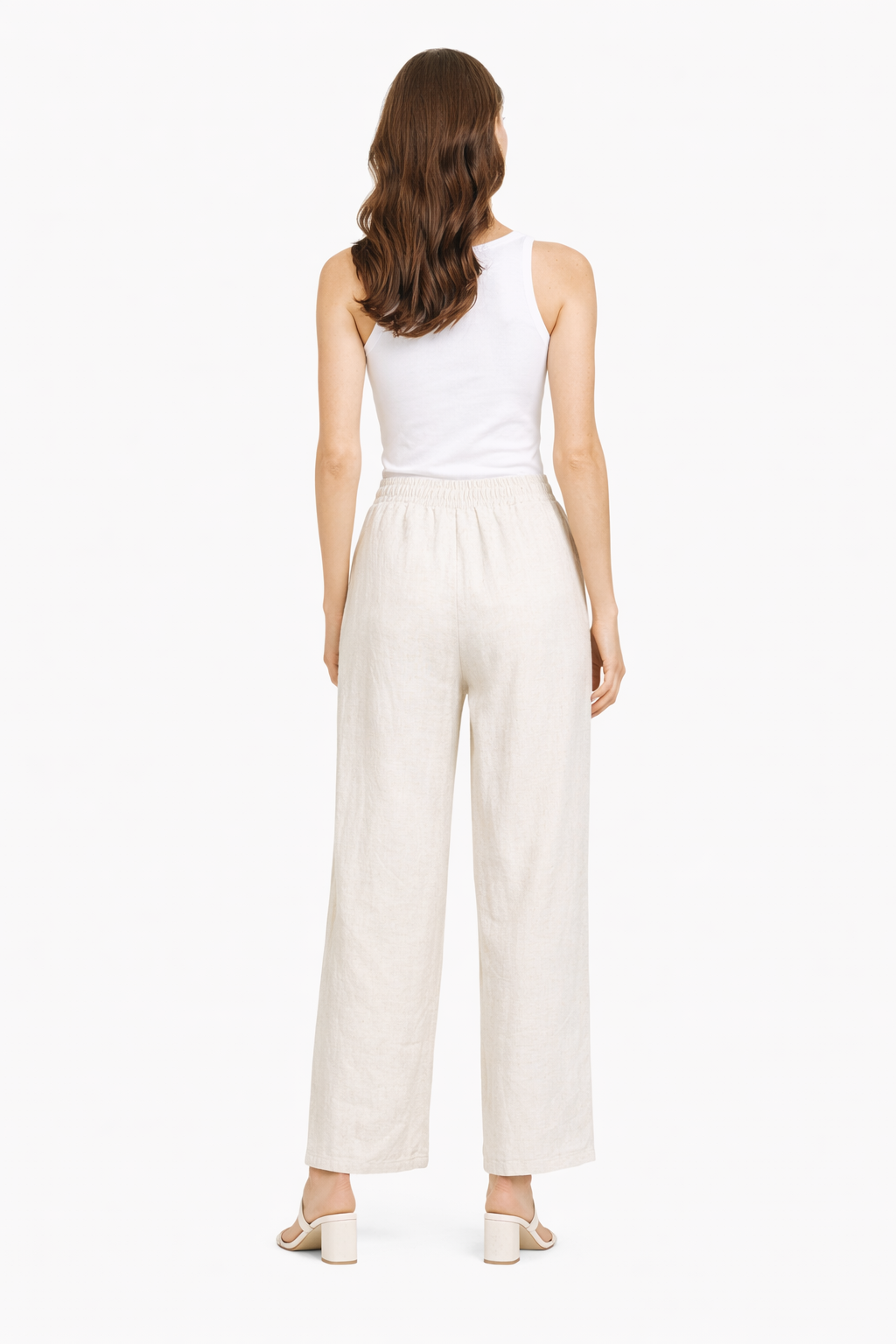 FLORAL PATTERN WIDE-LEG LINEN PANTS W/ EMBROIDERED DETAILING, DRAWSTRING, & POCKETS