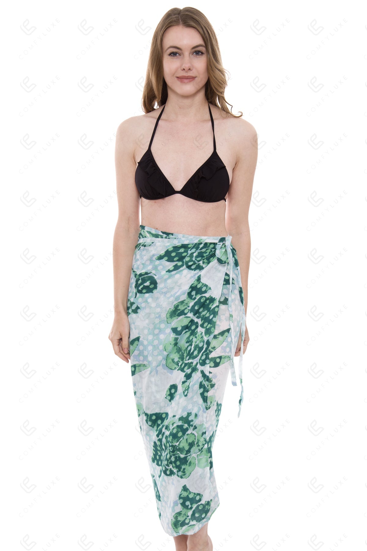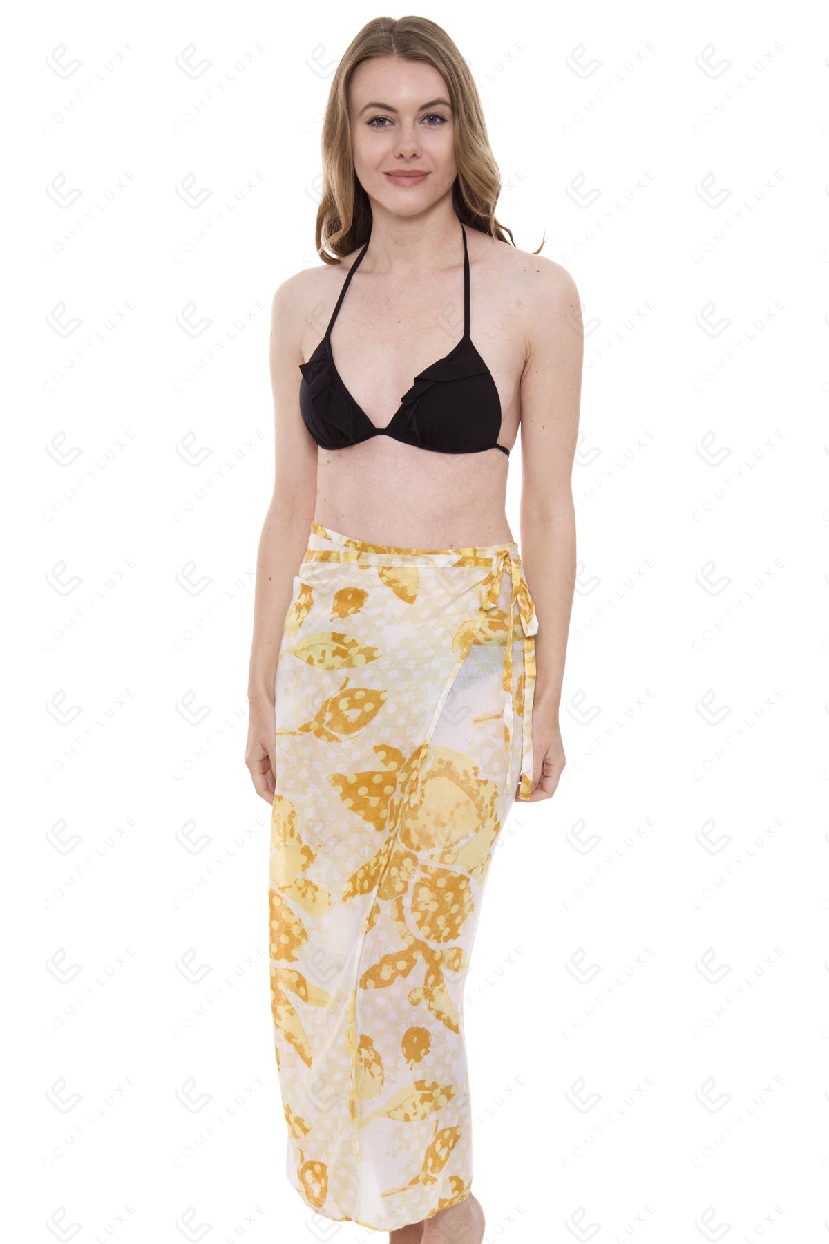 • Features: convertible scarf to cover-up and adjustable tie-knot strings