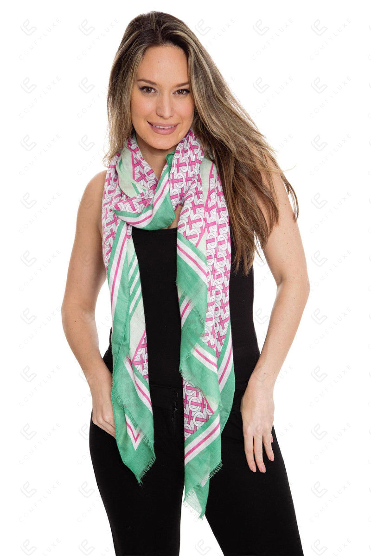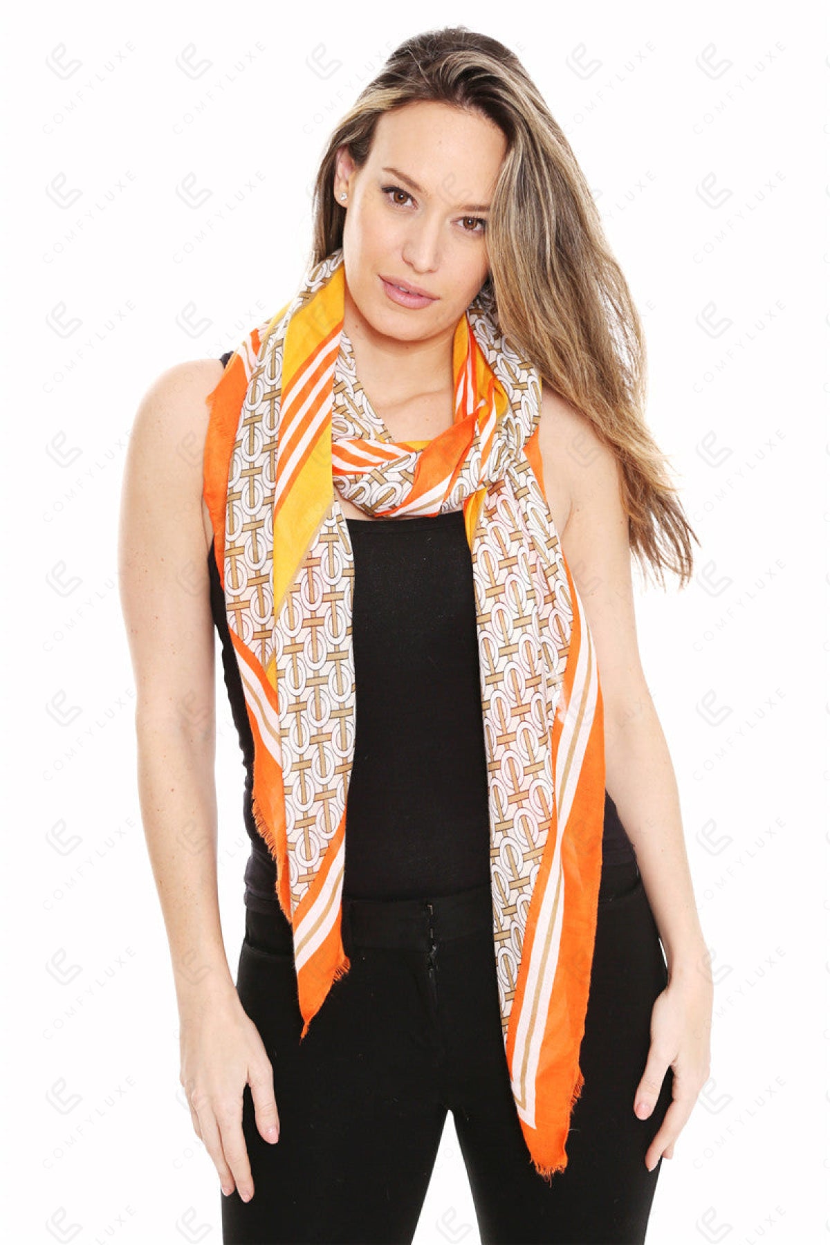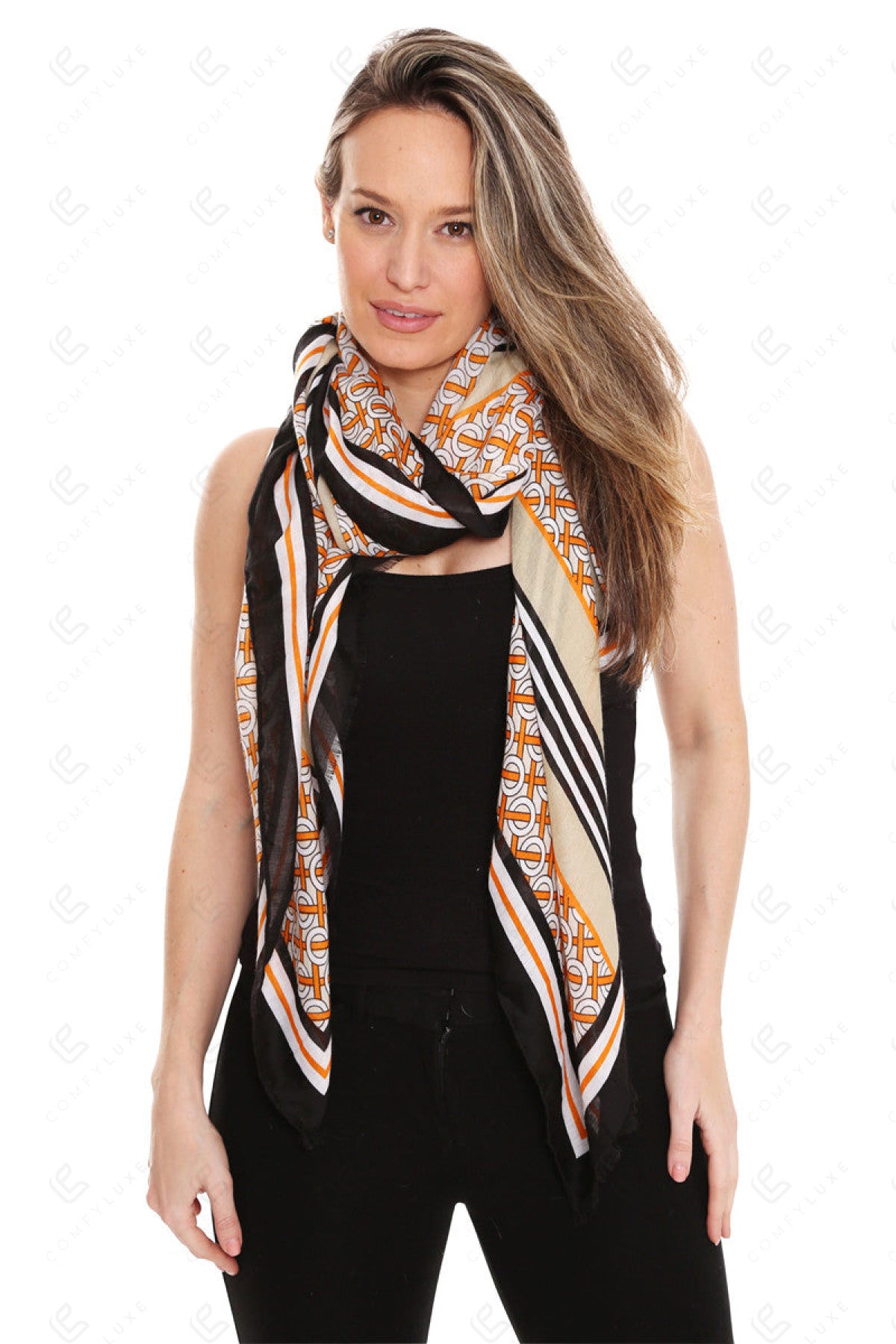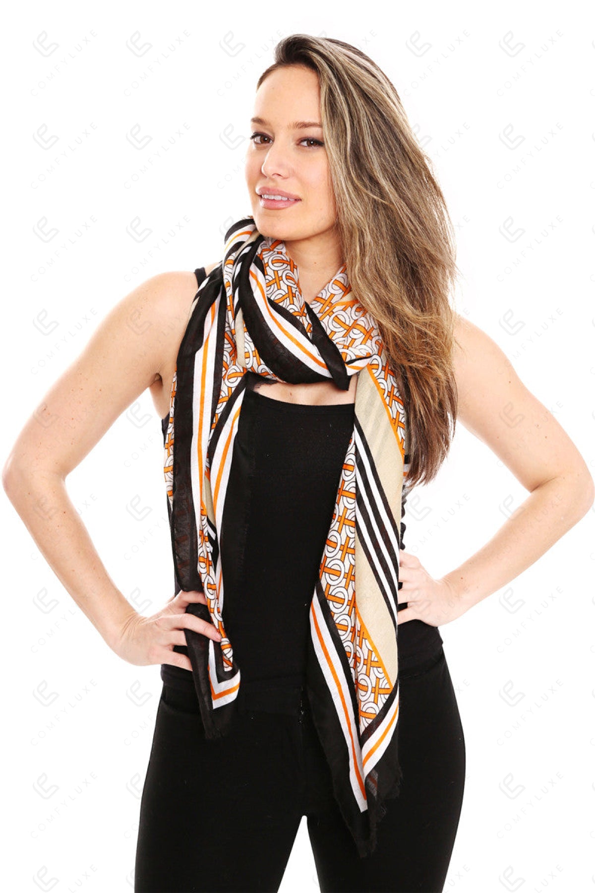 CIRCLE LINK & STRIPED PATTERN SCARF