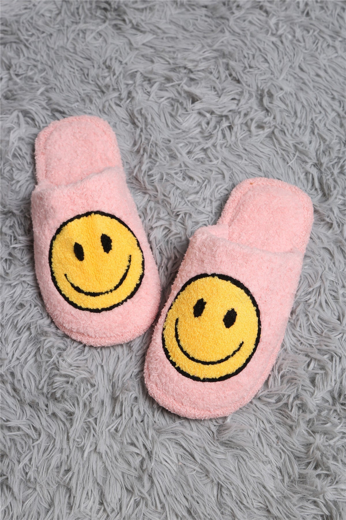 HAPPY FACE PATTERN EMBROIDERED LUXURY SOFT SLIPPERS