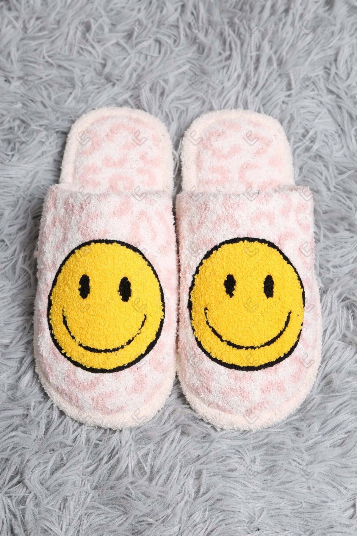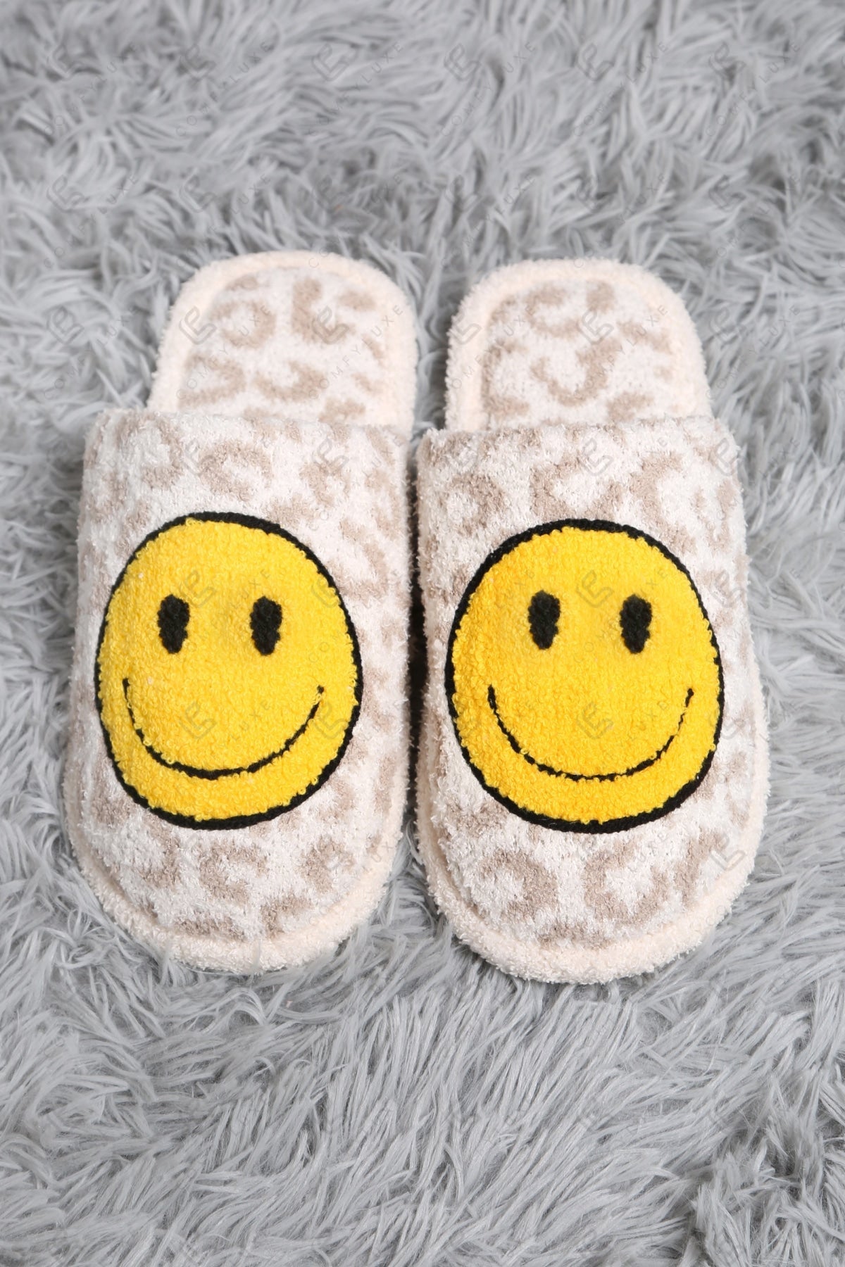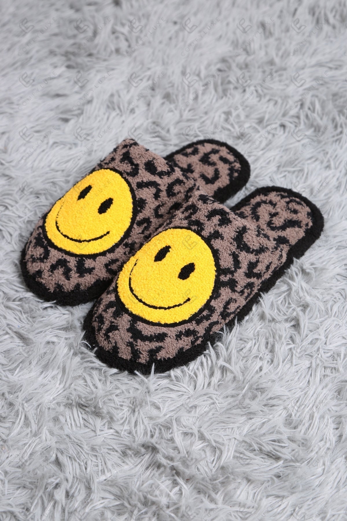 LEOPARD & EMBROIDERED HAPPY FACE PATTERN LUXURY SOFT SLIPPERS