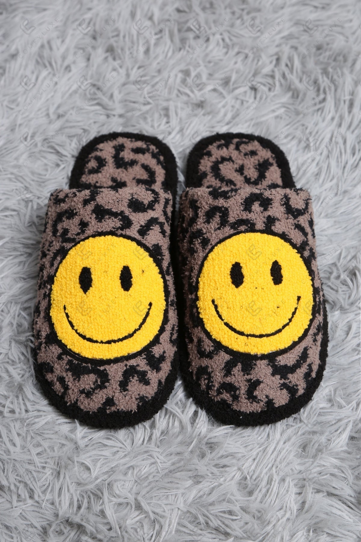 LEOPARD & HAPPY FACE PATTERN SLIPPERS