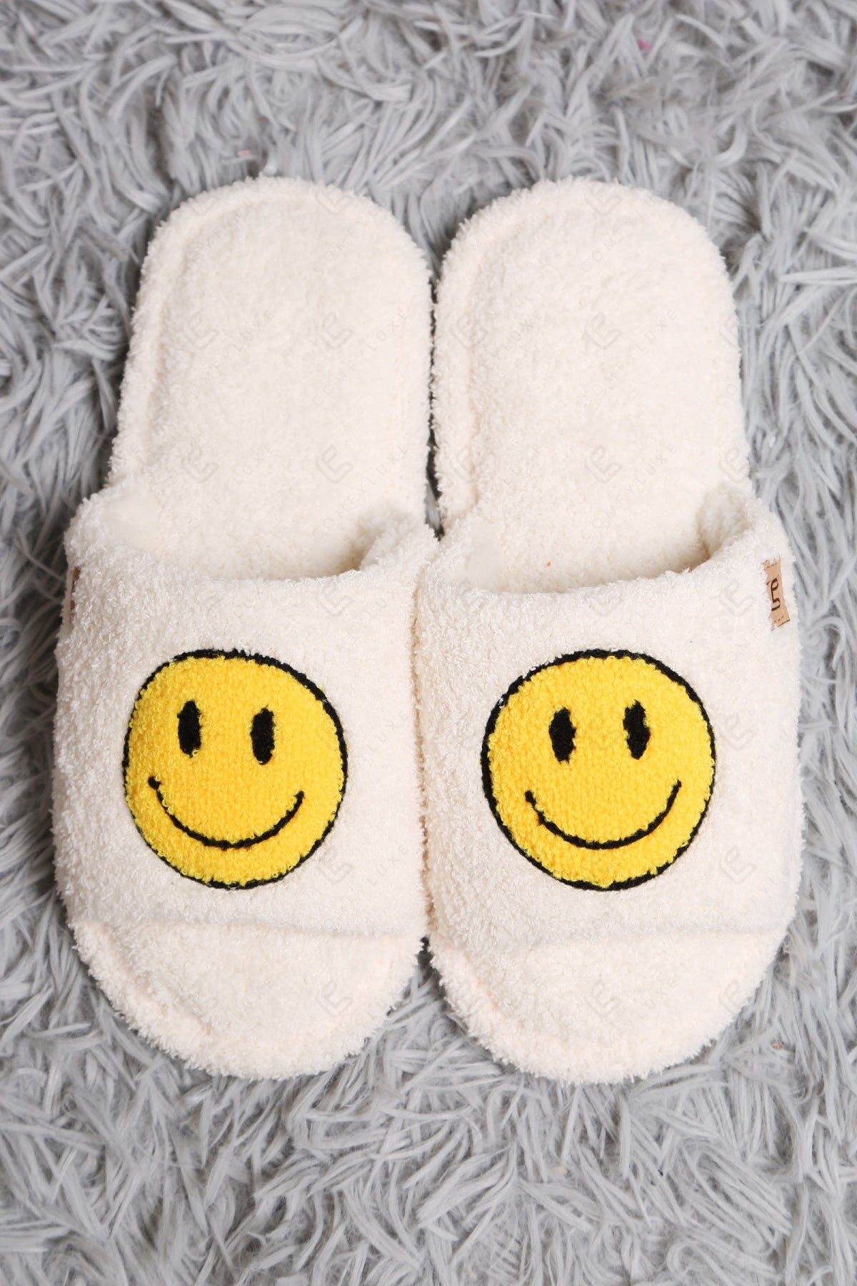 HAPPY FACE PATTERN EMBROIDERED LUXURY SOFT OPEN-TOE SLIPPERS