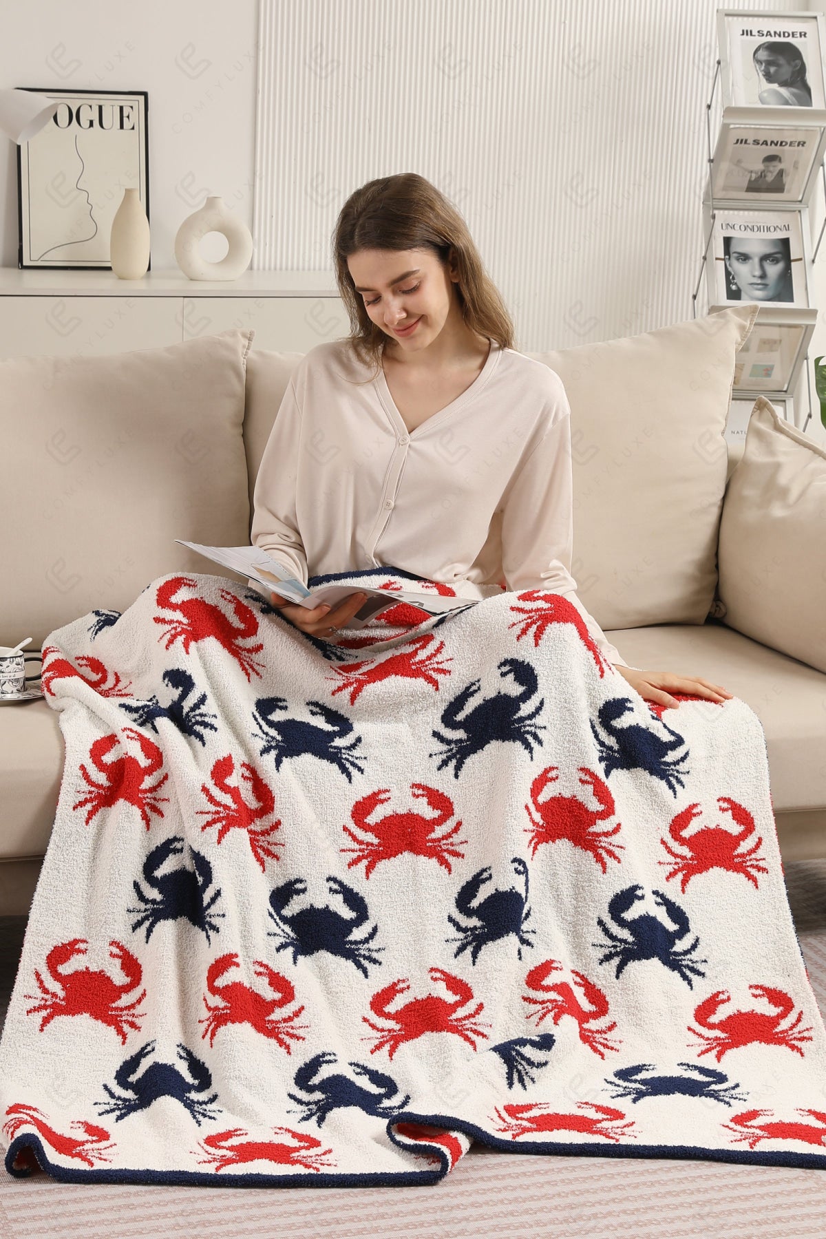 Load image into Gallery viewer, NAUTICAL PATTERN THROW BLANKET CRAB THROW BLANKETS